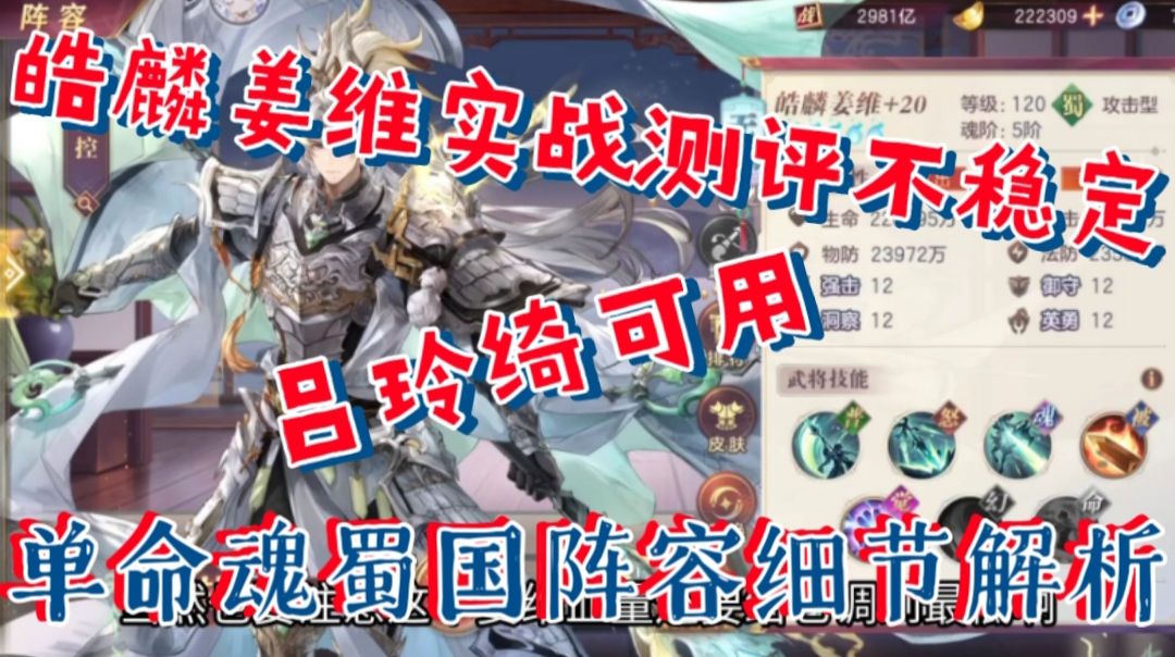 【三幻】皓麟姜维不稳定,吕玲绮可用,单命魂蜀国阵容细节解析