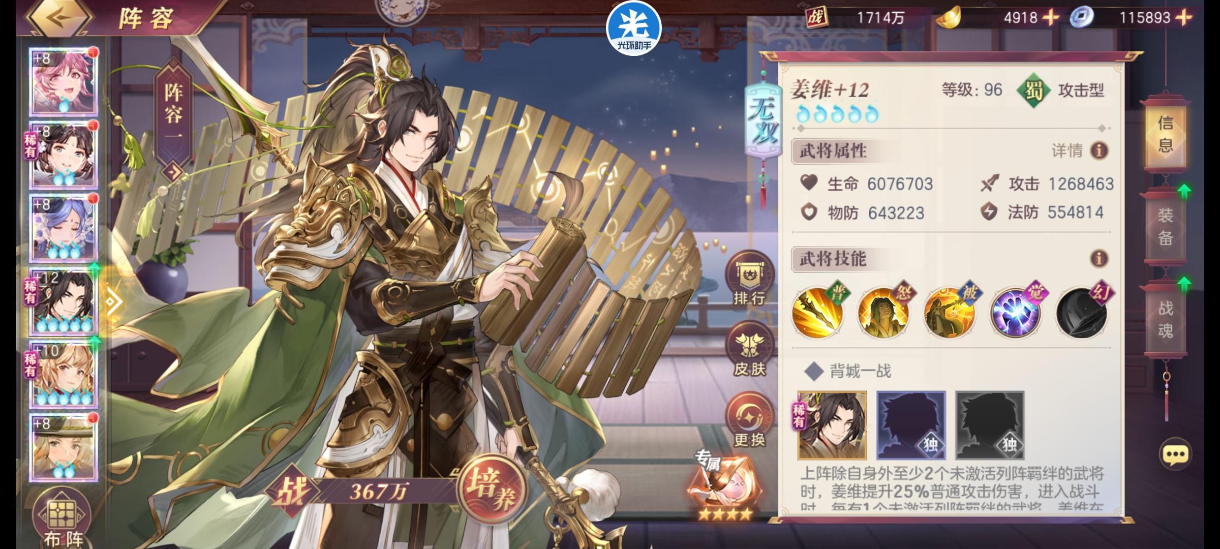 没有阵容1,一般我不发阵容那用打魔将阵容即可,这次还是看群里发帖吧阵容,打到了第一,如图所示这次活动不太友好,一星白虎没伤害 起码三星才行,所以星级低可以换鹿(不用狐狸因为懒)注意一点,一定要是姜维弱点,这样子满配可以十八W 不像我不到13W