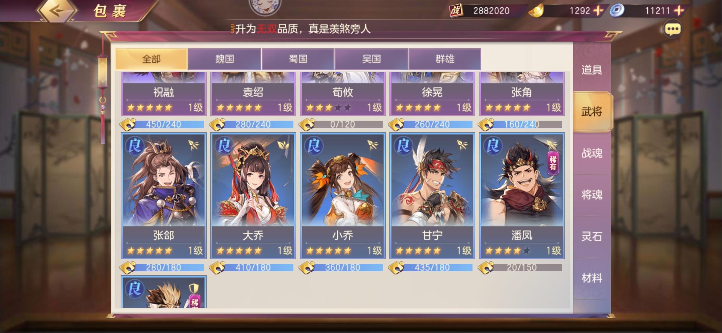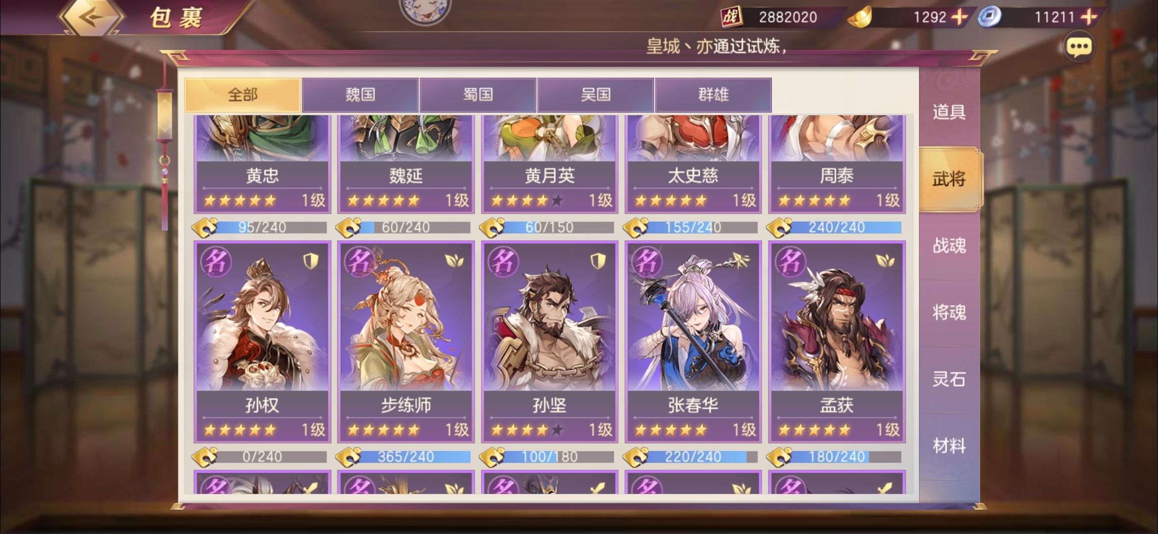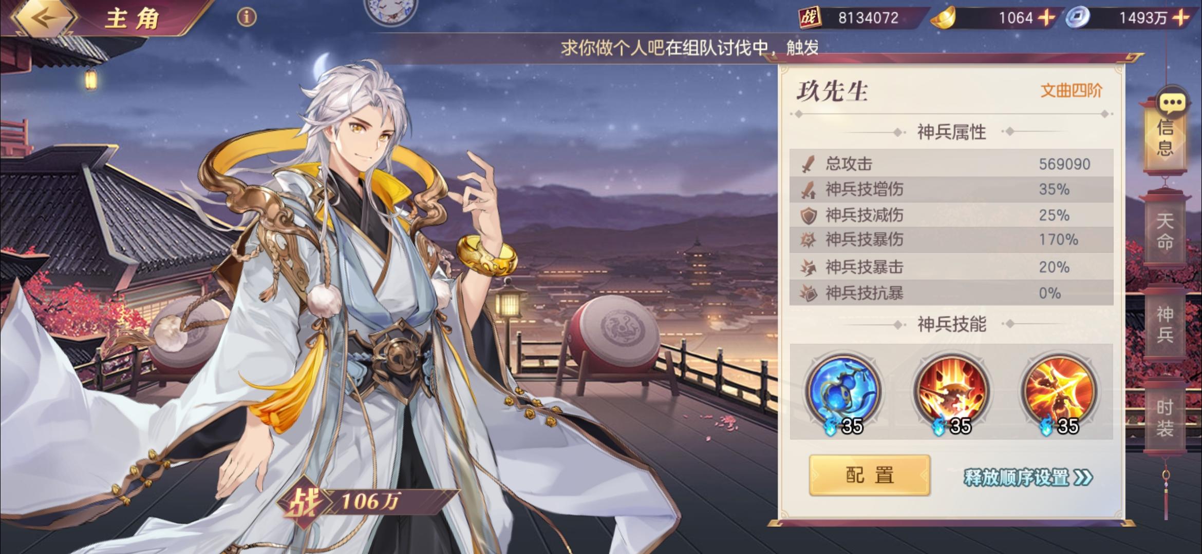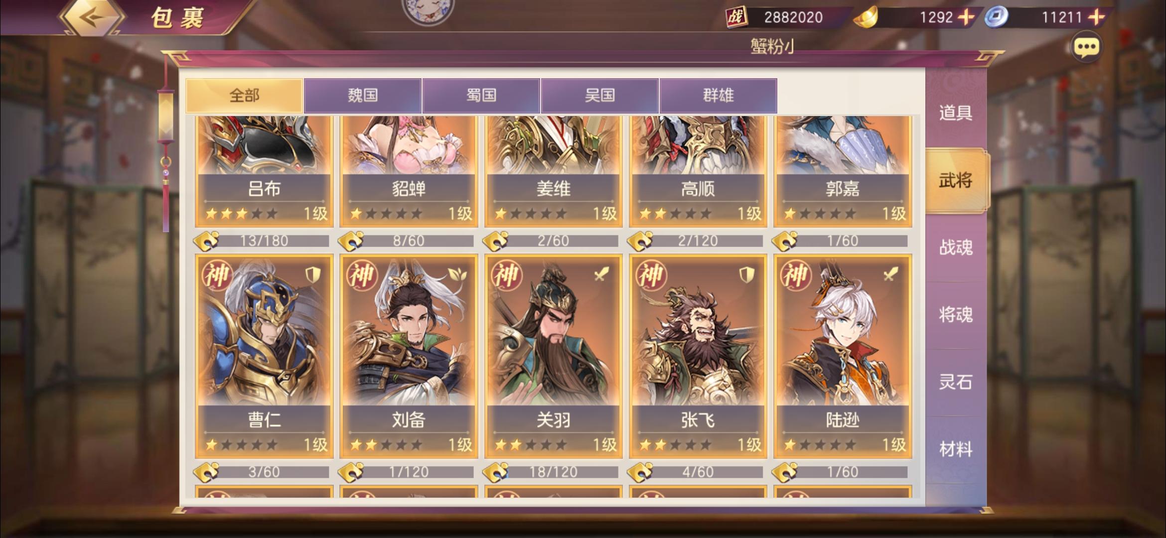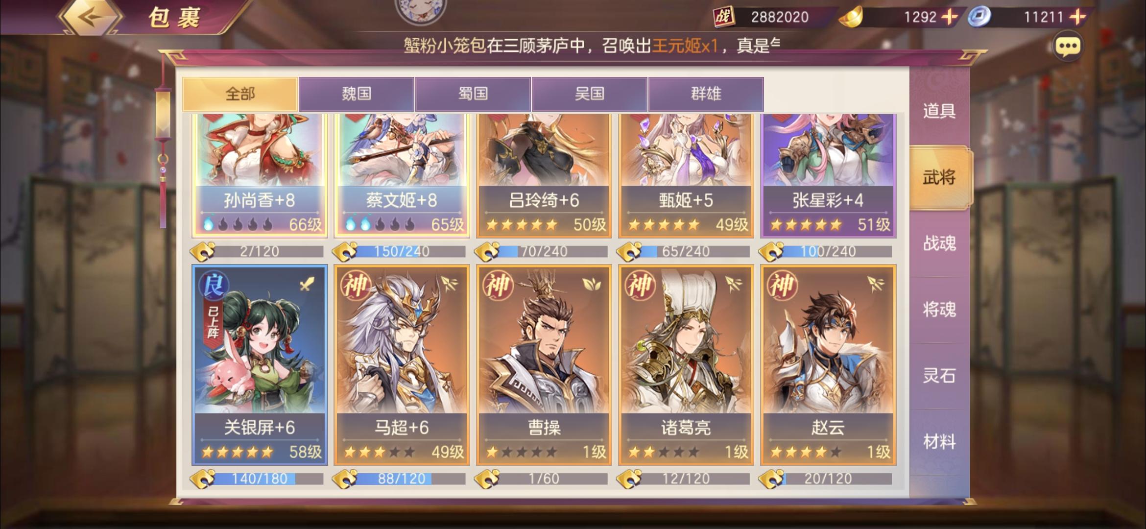 今天被团里氪金1000多的本服最强平民党暴打了,果断抄了一下阵容,越战一亿五没压力还是要靠我本尊出手,运气游戏这个阵容要求挺高的,三把武器,我没有曹操武器。。长驱曹丕弱点曹操,其他四个协防。。其实我觉得王元姬曹操破釜好一点,战灵异常抗加20,奈何我之前分了两套。。先将就用吧,协防主要是打灭,虽然输多赢少这套阵容很吃运气,同阵容他高我四千万我赢了。之前三攻姜维打他,被自己冻四个,贾诩姜维都冻住