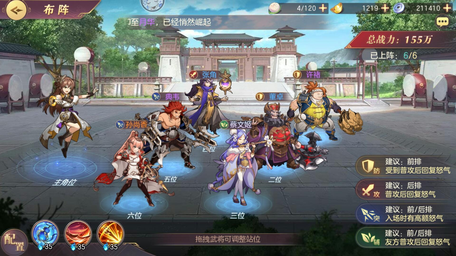 我练度比较低,左慈还没有三火,输出只能靠司马和神兵,真的不需要多高的星级就可以推图推的很舒服,我觉得五火司马是最优先的,左慈没五星的时候可以先用许褚,后面应该好像可以用许褚替代曹操?不过我个人觉得曹操buff还阔以,刘备是真的真的很强,最好优先到三就可以,只要运气好控的多,图都好过