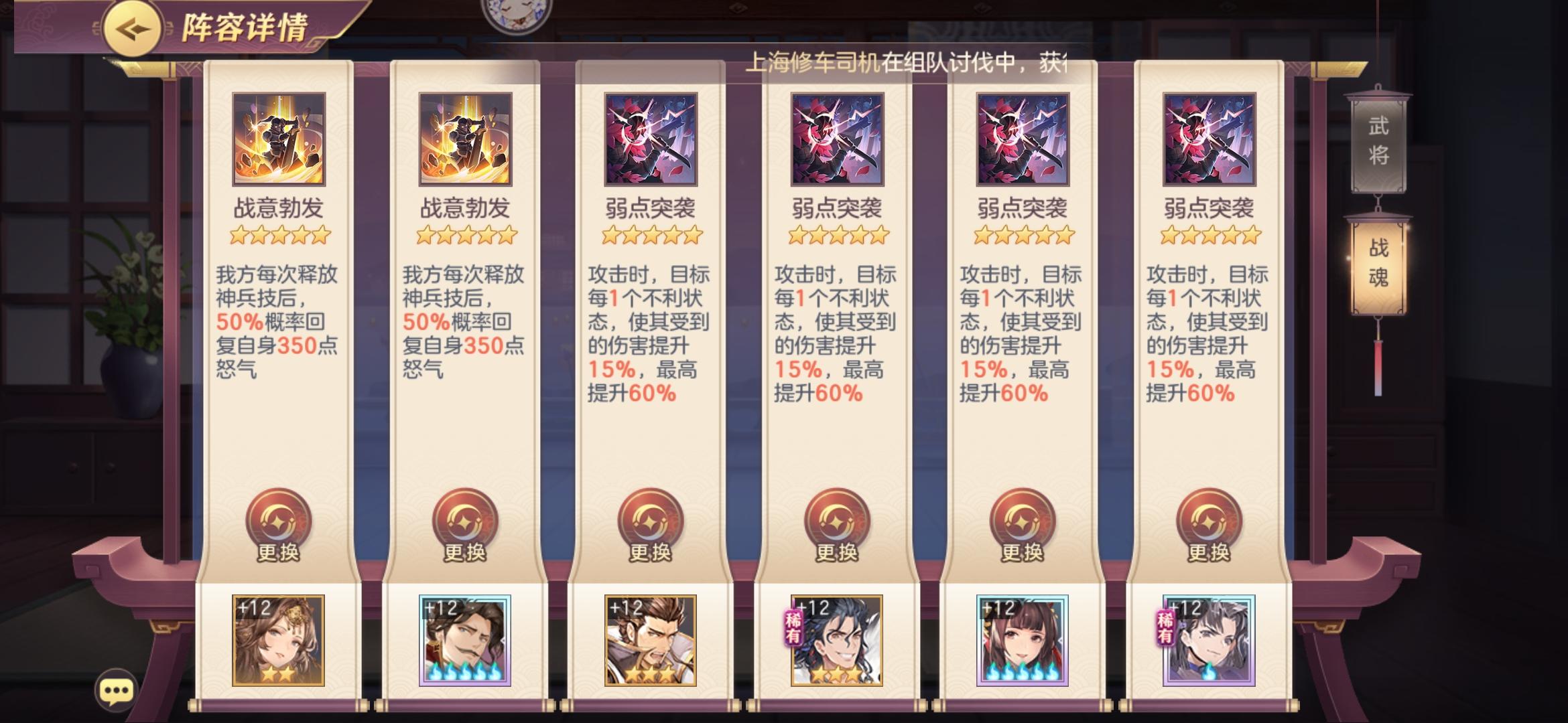 我是司马小乌龟阵容,打天尊太难受了,只能求被带,所以我随便凑出这套阵容,经过几次改良,效果不错。 主要伤害是春哥,无双上将作辅助,棋圣补伤。 没有神将,没有太多高星,容易凑齐,而且神兵要求也不高。 5000万左右的小伙伴们可以尝试一下 求赞