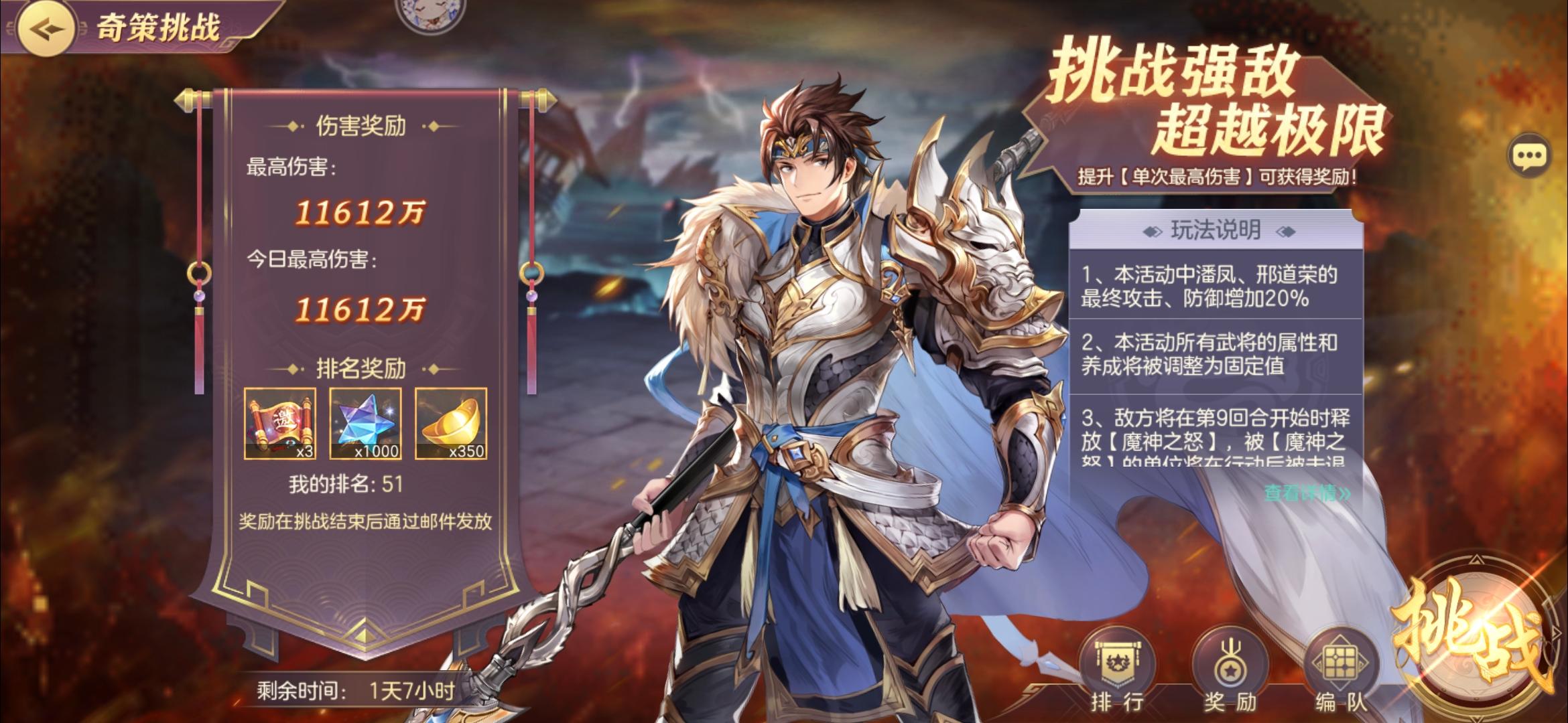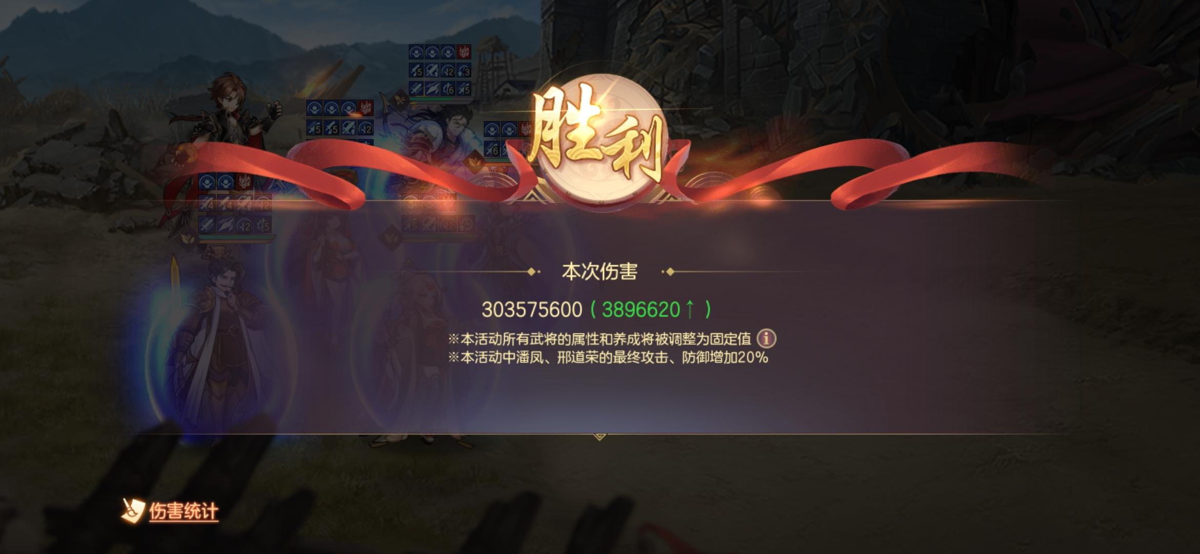 新区奇策,星不是很高但能打出伤害甘宁和孙权换位置,如果有曹操把甘宁换曹操,如果全三星或五星的可以上亿