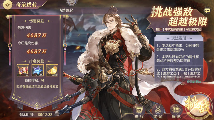 我的极限是不到2e,但是应该有希望,主要我自己懒不想重生武将了嫌麻烦,3个5火3个5星直接打的,战魂全战意,有能力的抄