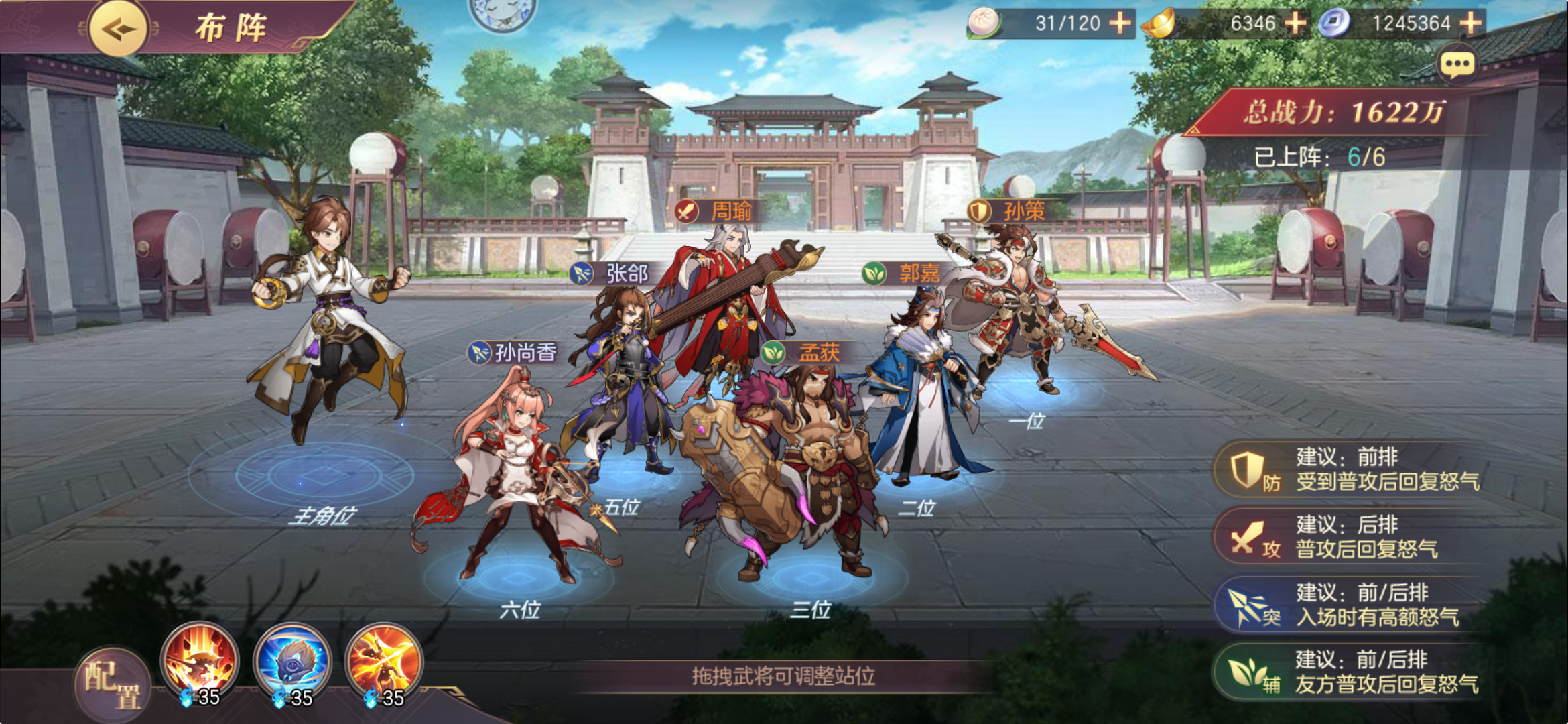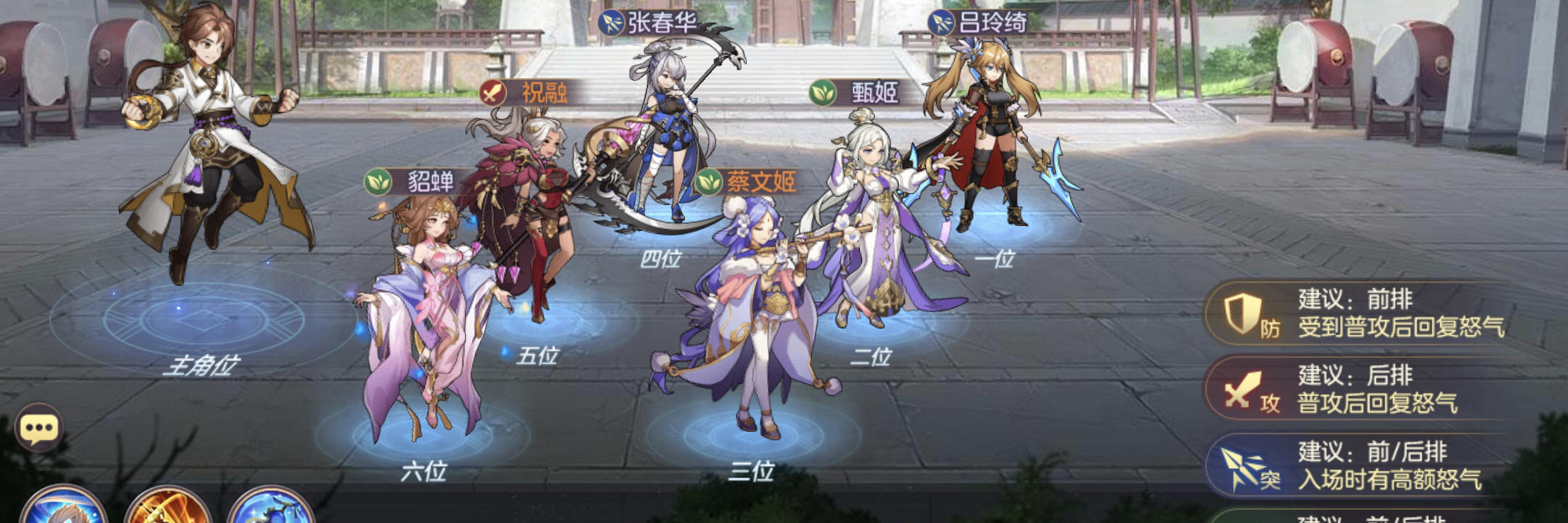 司马为核心推图体系估计大多数新人都看过类似的攻略,但是某些细节假如处理不好可能会卡图。比如88章后排夏侯渊切后队,前排2号位突开场秒人,还有下面视频中最让我头疼的盾兵.....开局左慈控到盾兵让他普攻第一次没怒气。才能抗到第二回合,不然谁都扛不住他怒气技能。常用是一号位曹操所以曹操练到了3火,可以看脸触发两次反击也就是150的怒气。基础怒气前期基本没有无双战魂都是零怒气,这个没办法。随机一