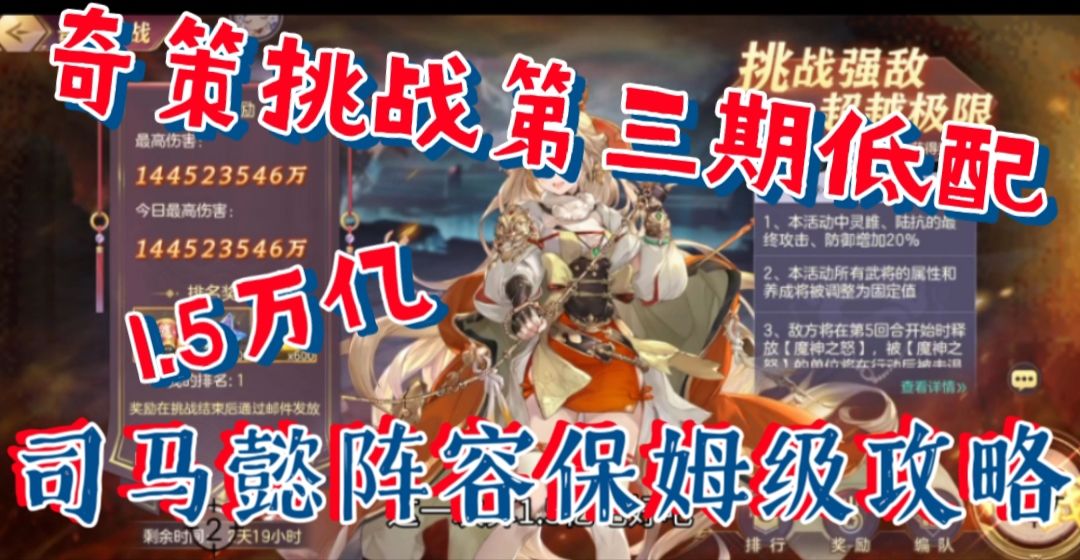 【三国志幻想大陆】奇策挑战第三期低配,司马懿阵容保姆级攻略