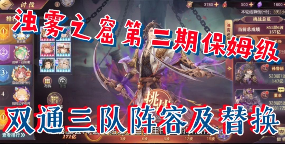 【三国志幻想大陆】浊雾之窟第二期保姆级,双通三队阵容及替换