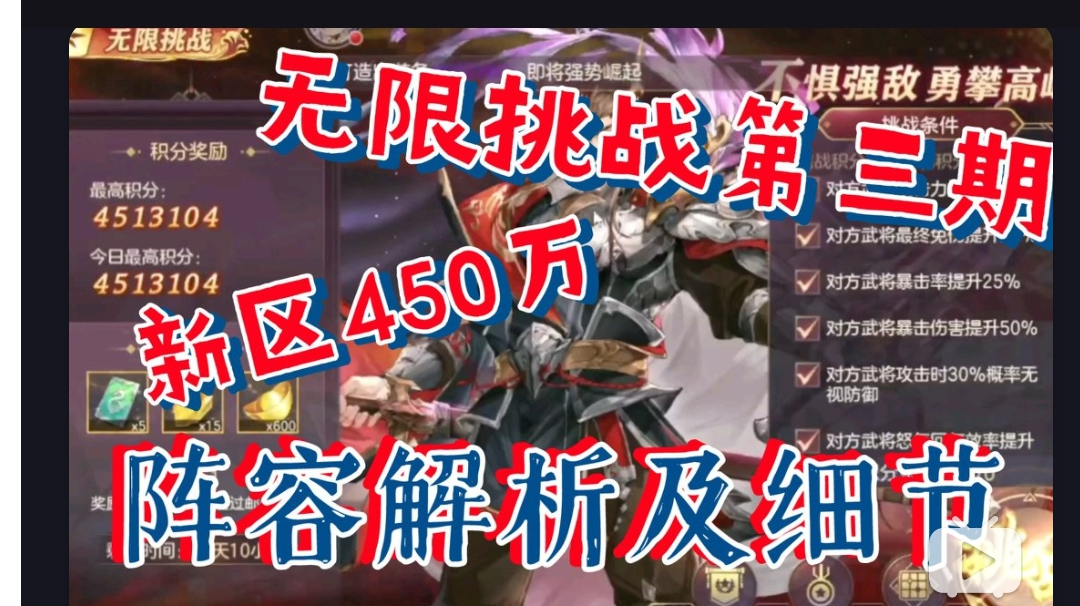 【三国志幻想大陆】无限挑战第三期,新区450万,阵容解析及细节