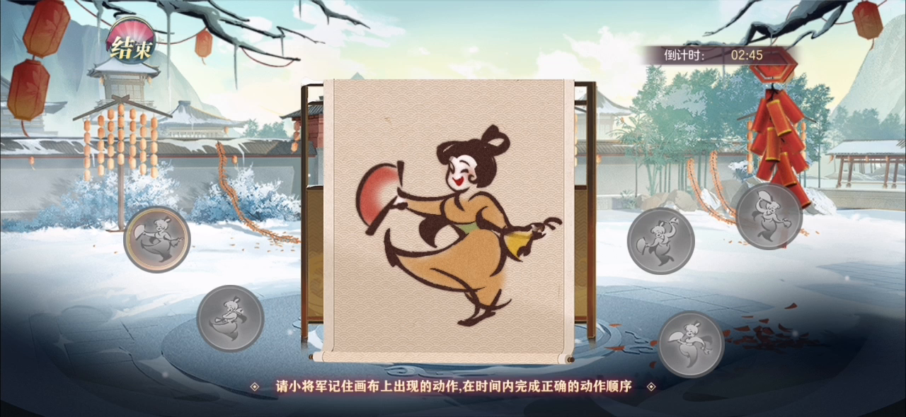 弄花灯为通过每日任务可以获取秧歌装备(即秧歌入场券),使用秧歌入场券可以扭秧歌,我认为的技巧为关掉所有加速,然后不看秧歌画面切换,仅仅观察5个秧歌图案的顺序完成跳秧歌,每次跳秧歌后可以获取极少的元宝以及制作花灯的材料,完成次数达到5-10-15次时可以获取花灯材料任选以及随机元宝。通过制作5个城区中居民要求的花灯条件可以获取特定的奖励,完成扭秧歌除了可以获取花灯材料外,还可以获得居民凝聚力,从而