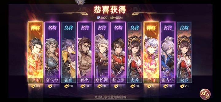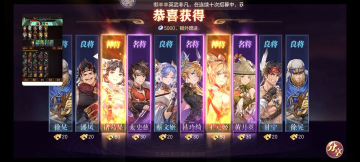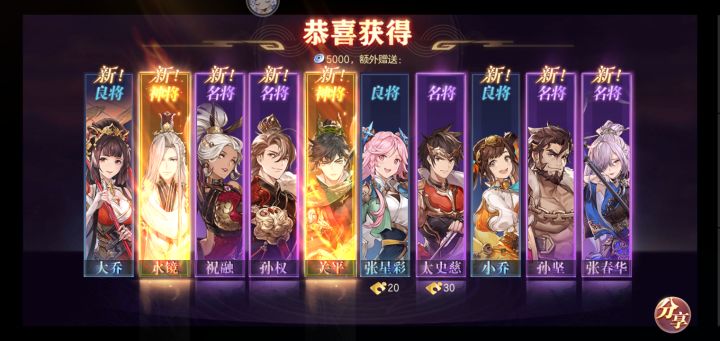 今天真的欧气满满,连续两次双黄蛋,还两个心愿都出了,曹丕成功五火,还第一次天下无双,芜湖起飞