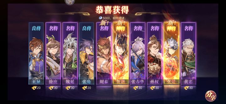 这就是传说中的尊重历史推动吗,首充给刘备,后面就抽到关张二人,最后抽到诸葛亮,再后面就是孙尚香,不过,讲道理不应该刘关张后面直接接个赵云吗