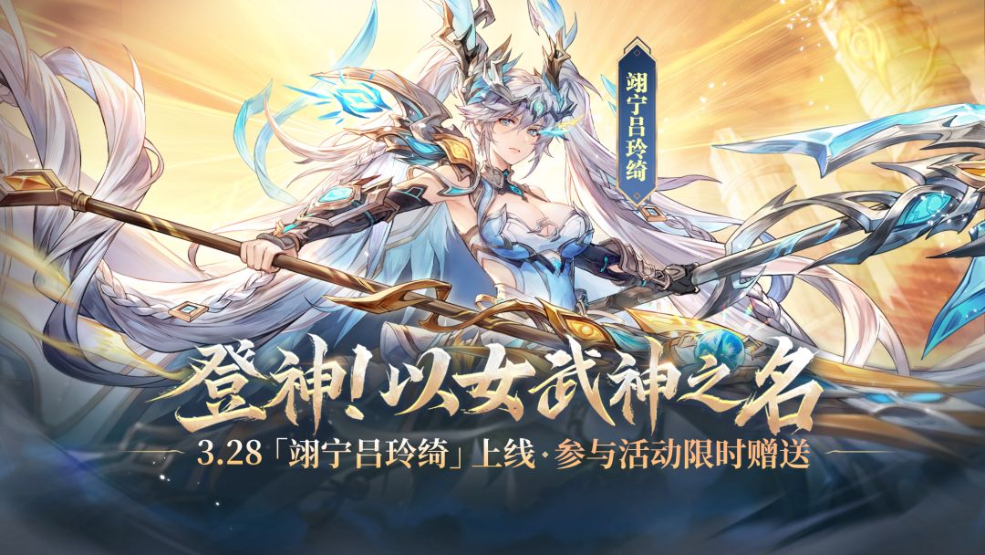 我曾以为,拥有方天画戟才能睥睨天下。 却忘了,最该相信的,其实是自己的力量。我,才是自己最强大的武器! ——3月28日 全新魂将【翊宁吕玲绮】携【登神幻想服】正式上线—— ※【翊宁吕玲绮】直伤输出型女武神。以弑神之姿,破甲暴击、连环追击,主宰战场输出!参与活动即可获得。 ※【登神幻想服】全新幻想服「幻想·翊佑韶光」,参与活动任选3魂将+6神将、送「诸葛果·竹影萌踪」史诗皮肤,还有免费领大小月卡、主