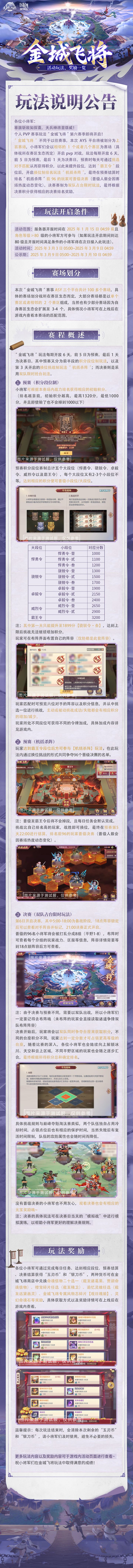 玩法公告丨个人PVP玩法“金城飞将”S6明日上线!
