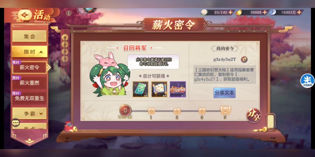 1、Y服P5N7X8S4x礼包内容:【魂将招募券3,武将招募券*10】兑换方式:在右上方选活动-限时-薪火重燃-输入密令2、武将招募券和元宝兑换码UYFD-HCRR-UPGJ天工不夜城(30级以上)方便伸手党或者萌新直接查阅