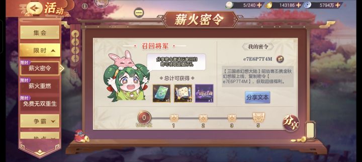 薪火密令∶e7E6P7T4M#三国志幻想大陆