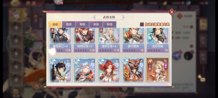 在首页搜索栏搜索“三国志幻想大陆”,可以发现游戏已经推出了第二部,但是第一部仍然是经典,我也更推荐新玩家试试这款卡牌养成向的游戏在已经有一段时间没打开“三幻”后,我第一步首先是玩了“奇遇”,三幻里的奇遇相当于一个副本玩法,里面有很多武将会跟你进行对话,不但能获得很多奖励,而且还能让你对这个武将有更多了解,毕竟这还是一款养成向的手游,每个武将的故事也都会多少和咱们主角沾上关系,正所谓我在三国开后宫