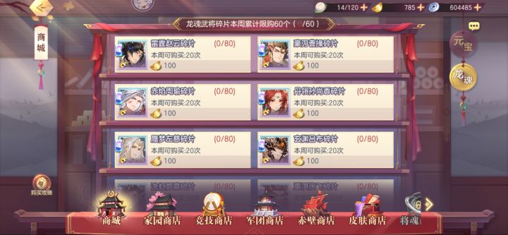1.商城建议每周购买五个无双觉醒石,魂将碎片安需求购买,无双唤灵石和列传石前期可以暂时不用买,竞技商店优先购买神将碎片,神兵碎片,各种令牌,多余的可以换战魂石,普通和稀有灵石,军团和家园商店每日清空2.招募普通招募:每日可以选择两个心愿武将,保底是40抽,出心愿武将的概率会提升,但是还是会歪三顾茅庐:选择一个武将,后面招募就只会出这个武将和将魂,神锻石等魂将招募:快速获得魂将的途径,新手
