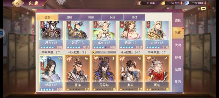 1.雷霆赵云,推荐养到3火,三火魂赵的龙盾在山河中可以防止武将蒸发,有助于后面的山河推图,PVP阵容也可以搭配女团使用