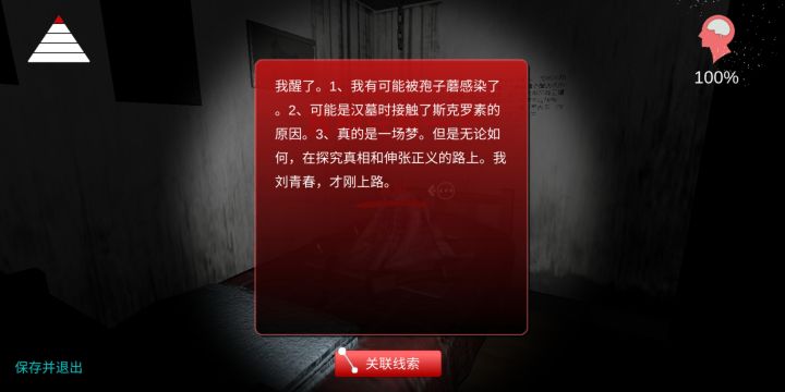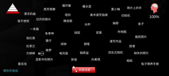 游戏分为四重梦境,所以本次攻略也按照四个梦境的顺序编写。————————————————线索图鉴————————————————————————一重梦境:即出场的房间重要物品线索:1..关联出做梦这条线索后,需要拿钢笔,进去剧情,用钢笔插自己的眼睛,之后才能进去二重梦境。有点残忍,刘老大真狠人。2.梦境:钢笔插自己眼睛后,自动获得线索关联:1.做梦=哑铃.橡皮筋.镊子.闹钟