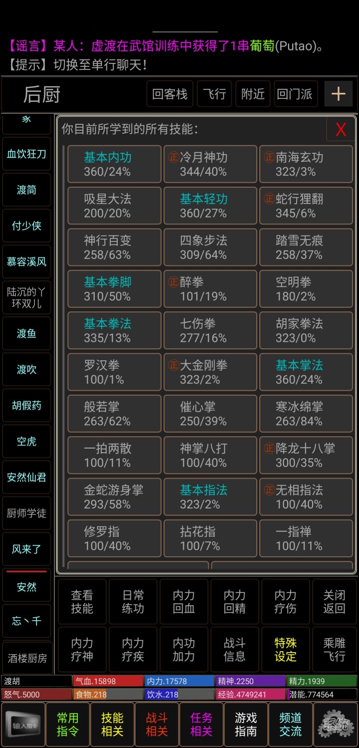 胡家新手攻略。本人作为胡家萌新,希望给后来的胡家人一点帮助。开局臂力洗点。出生胡家,天赋鸿运(为了吃丹,吃满丹),心狠手辣。出生胡家才能通过平四,如果你不愿意胡姓,也可以通过别人打平四,胡斐出来你再拜师,或者买一个通行令牌,商城有,一元宝票一个。开局,不建议直接进胡家。为什么?胡家的精髓在于互搏开天。互搏开天,和互搏降龙都需要大金刚。前者能够增加伤害,后者需要命中。大金刚作为少林魔功,当然