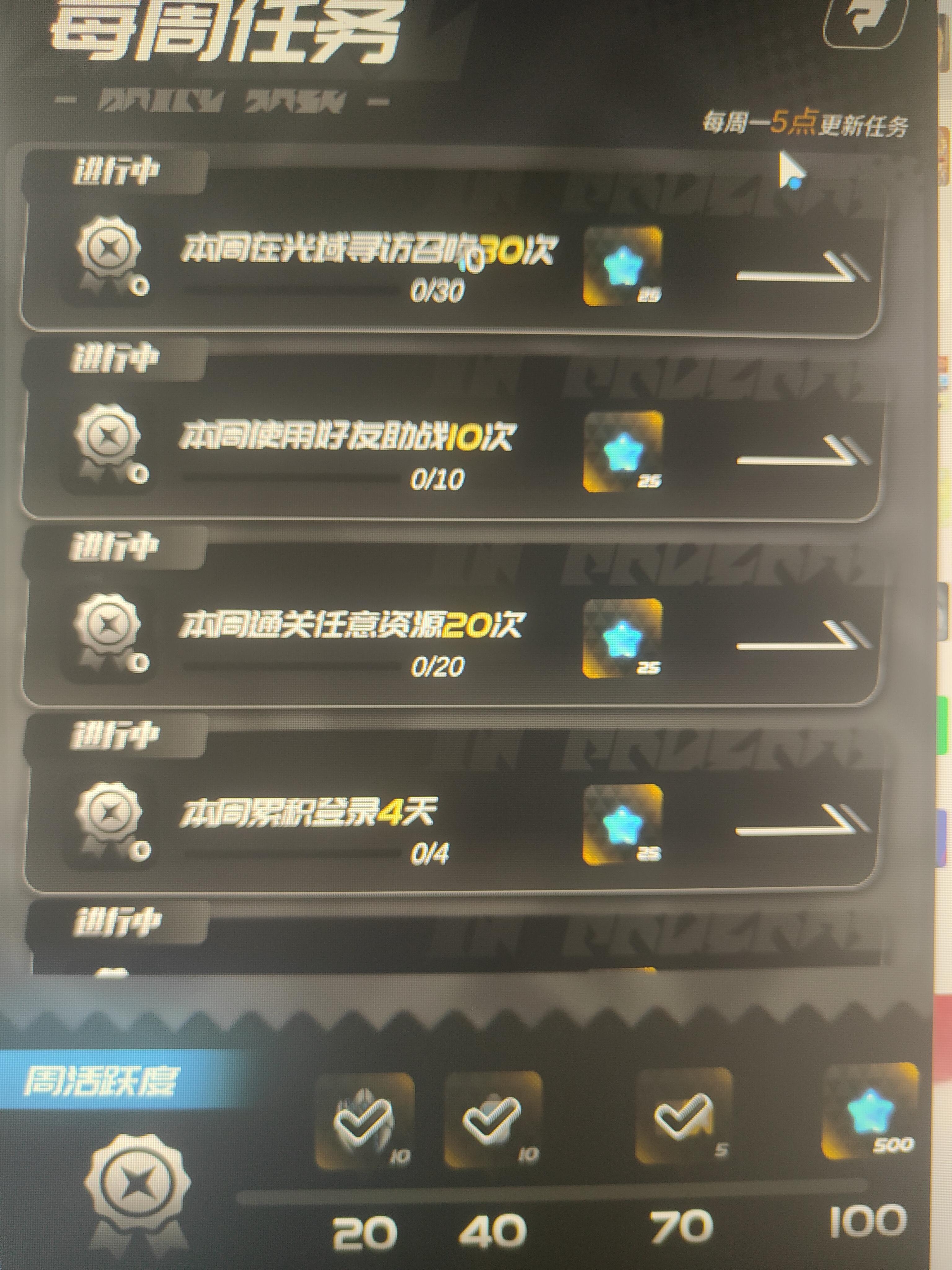 你这说这周一五点刷新 还没到就给奖励进度冻结清零了 本来就没法所有的都做 提前领取进度到100其他的没法继续做领蓝星还玩这一手防止人拿奖励对吗?