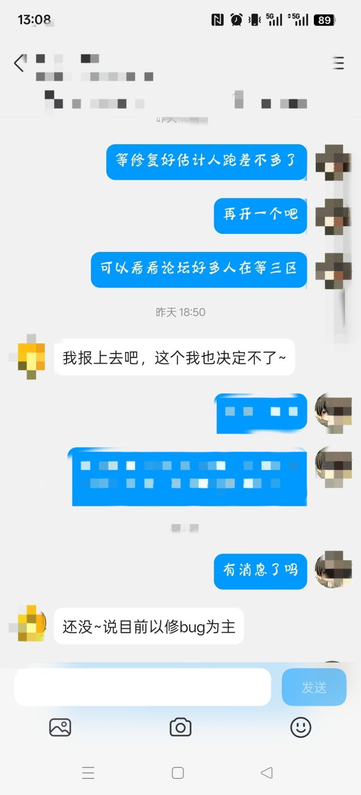撤了吧,等游戏修复所有bug,在开新区没希望了,撤了吧。第一次遇到都公测了还在忙着修复bug,开区都不愿了,估计要跑了