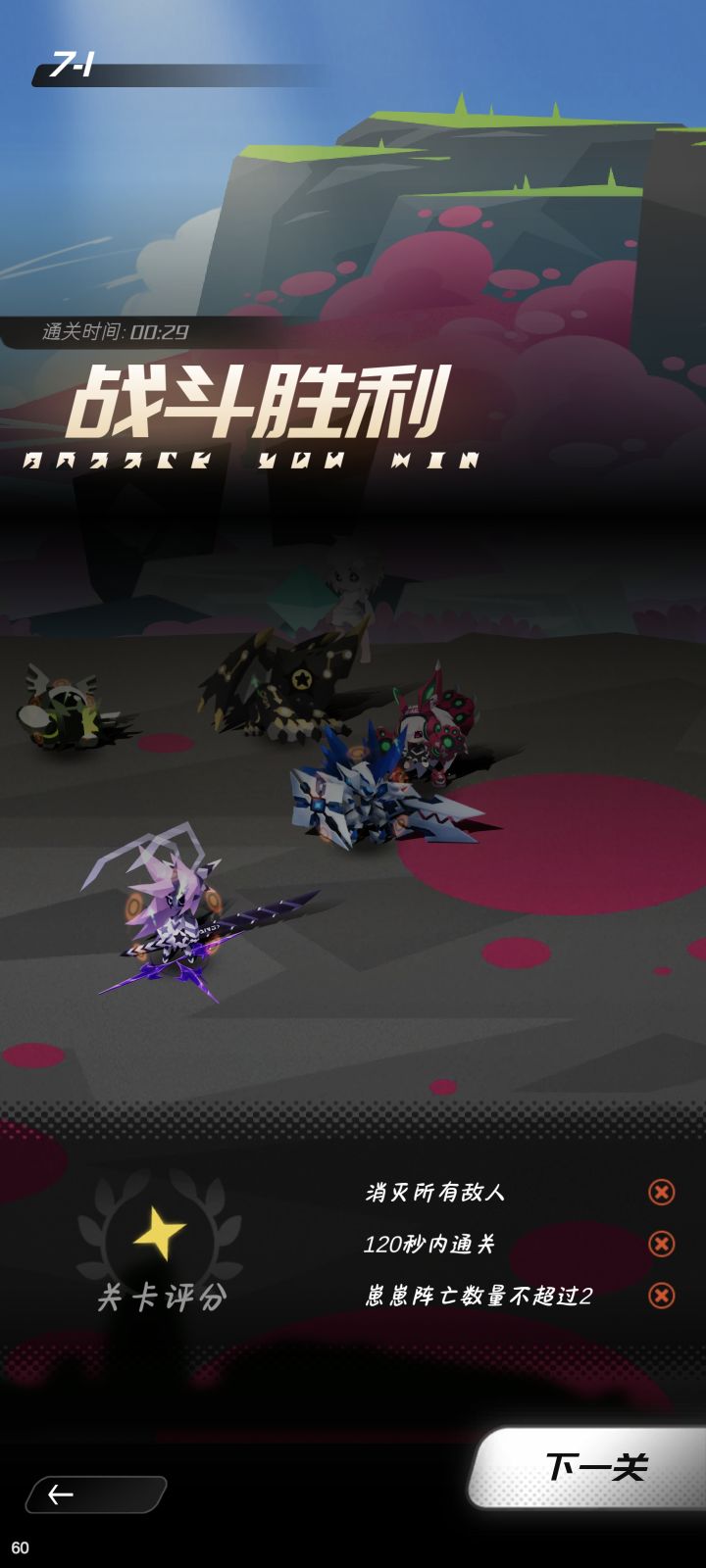 我正常二十多秒通关,显示也是通关,也可以点击下一关,下一关打完照样可以打下一关,我打完整个7章节出来才发现我连第一关都没过,随后反复打了四五次照样没办法通关