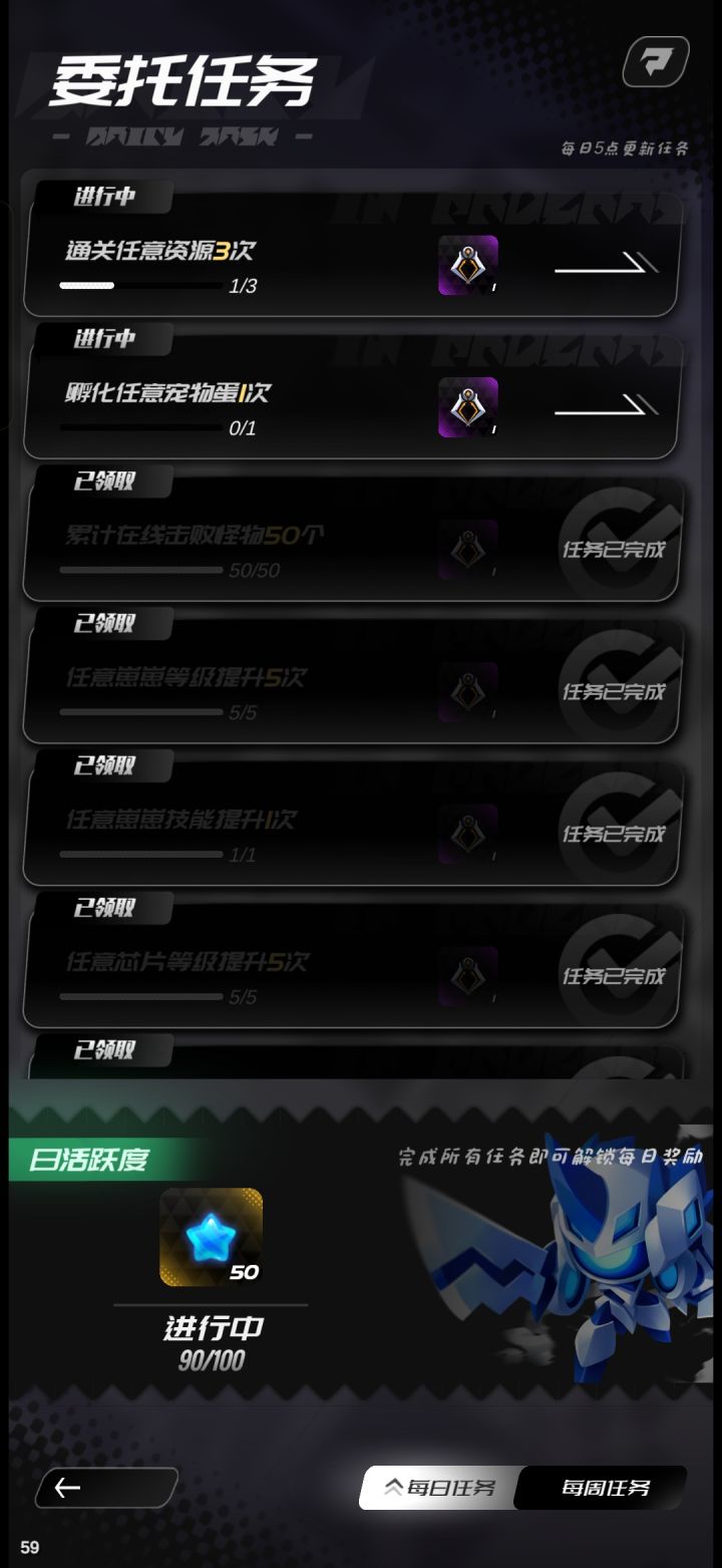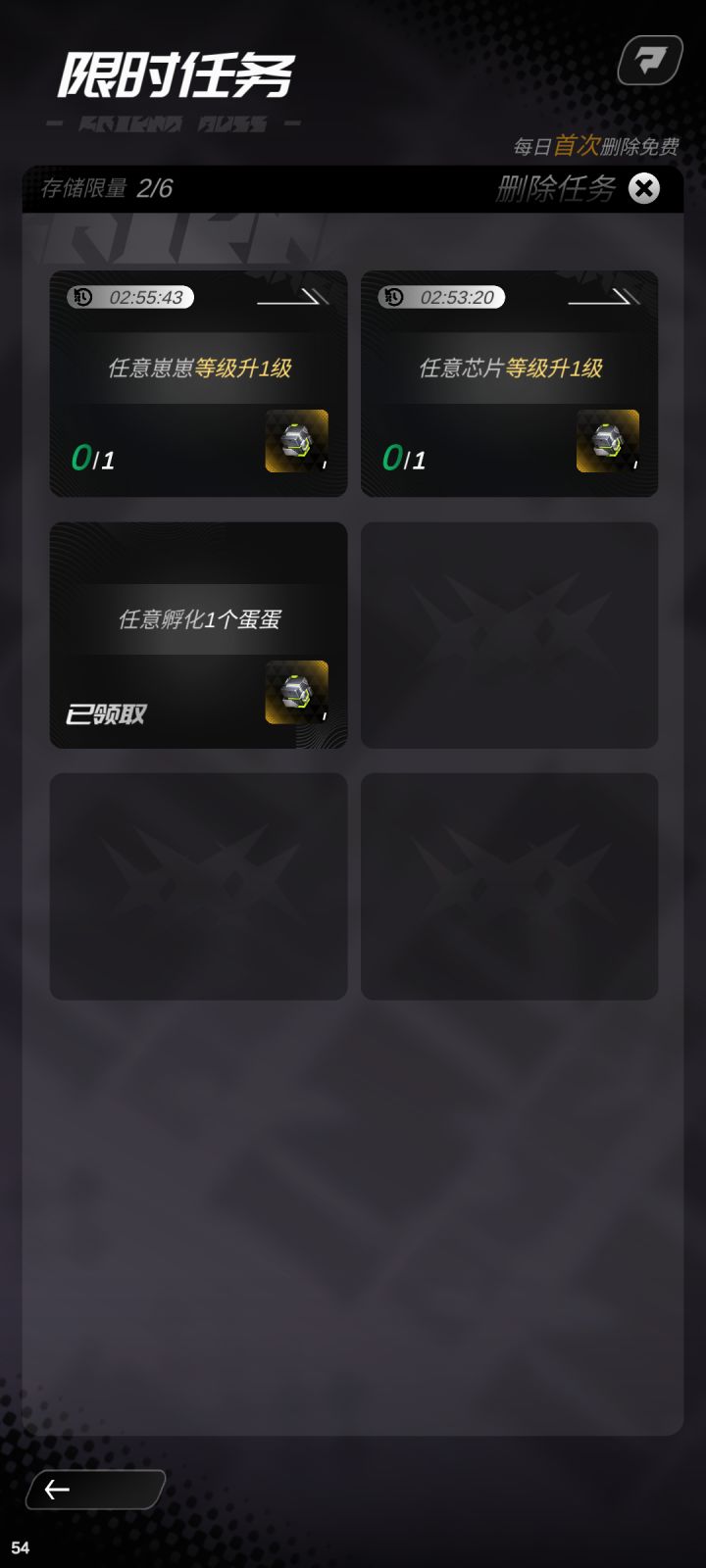 第一个应该说过:是限时任务的可以看到那个孵蛋的任务完成了,但是为啥升级的任务没有反馈,上阵的和不上阵的都升级过,但都没显示完成;第二个是我打资源本的时候发现的,在滑动下方各个资源本的时候会有卡死的情况出现,一个一个滑,然后就会卡三五秒,这个时候操作是没有反应的,过几秒就会自动恢复