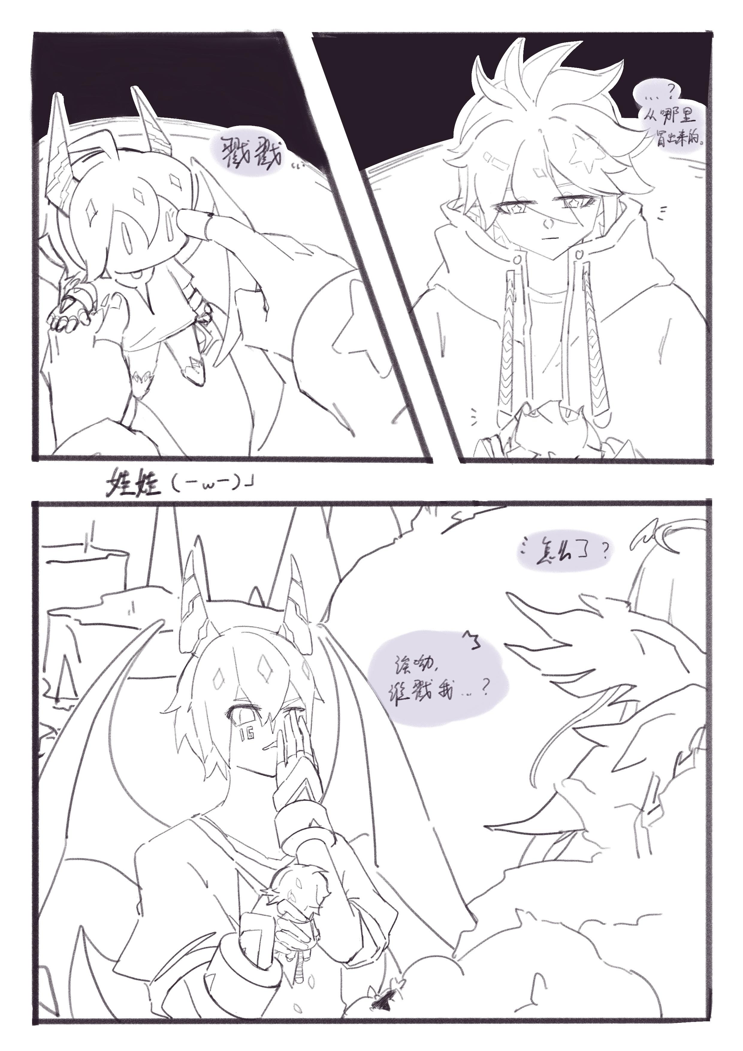 上面是灵魂注入人形黑黑的过程(?)、下面是萌星蛋组背景描述的蓝星区域灾害过程耀子哥在捞还没离开的白白()(比起cp图更像是把两个场景拼一起了(( ・᷄ὢ・᷅ )