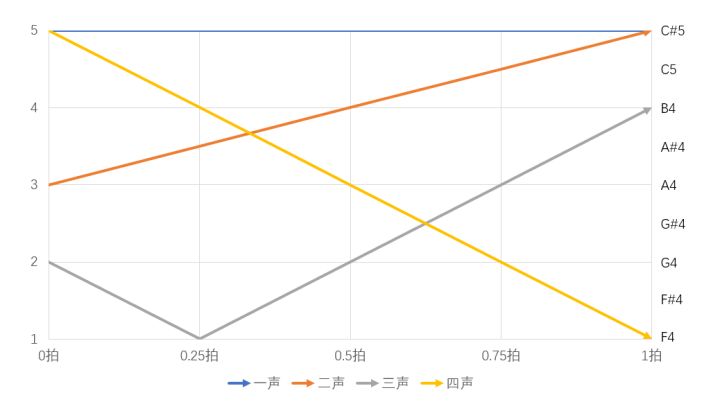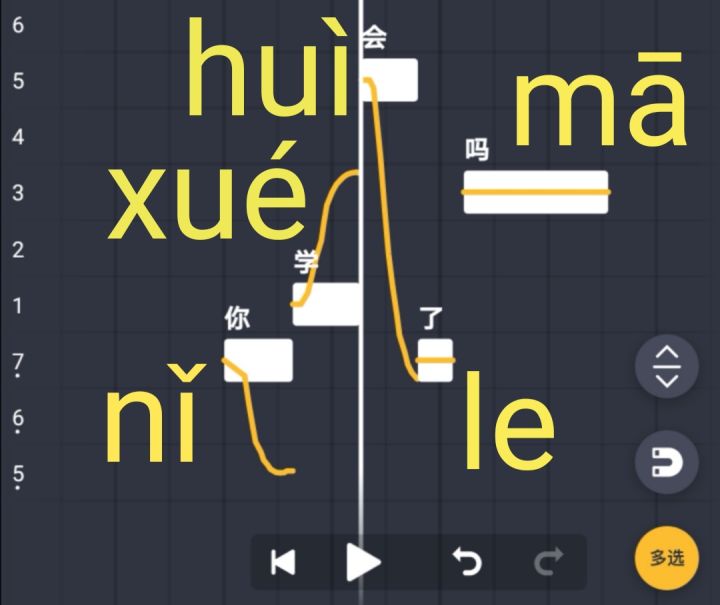 注:暑假写着图一乐的东西,内容并不准确,实际上说唱的画线并没有那么简单,而且当时的玩的版本是2.4.5,已经不怎么适用于目前的新版。。。(前言:这是我根据对几种中文语调教教程的学习和研究总结出的一个大致方法,但仅供参考,实际情况还是以感觉为主。)一、五度标记法首先,我们得熟知五度标记法,如图所示【阴为第一声,阳为第二声,上为第三声,去为第四声】在这里,五度是相对的,并没有固定音调,五度间