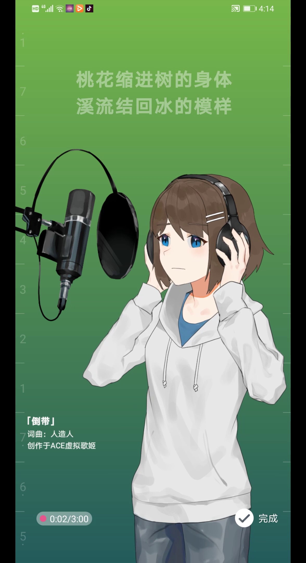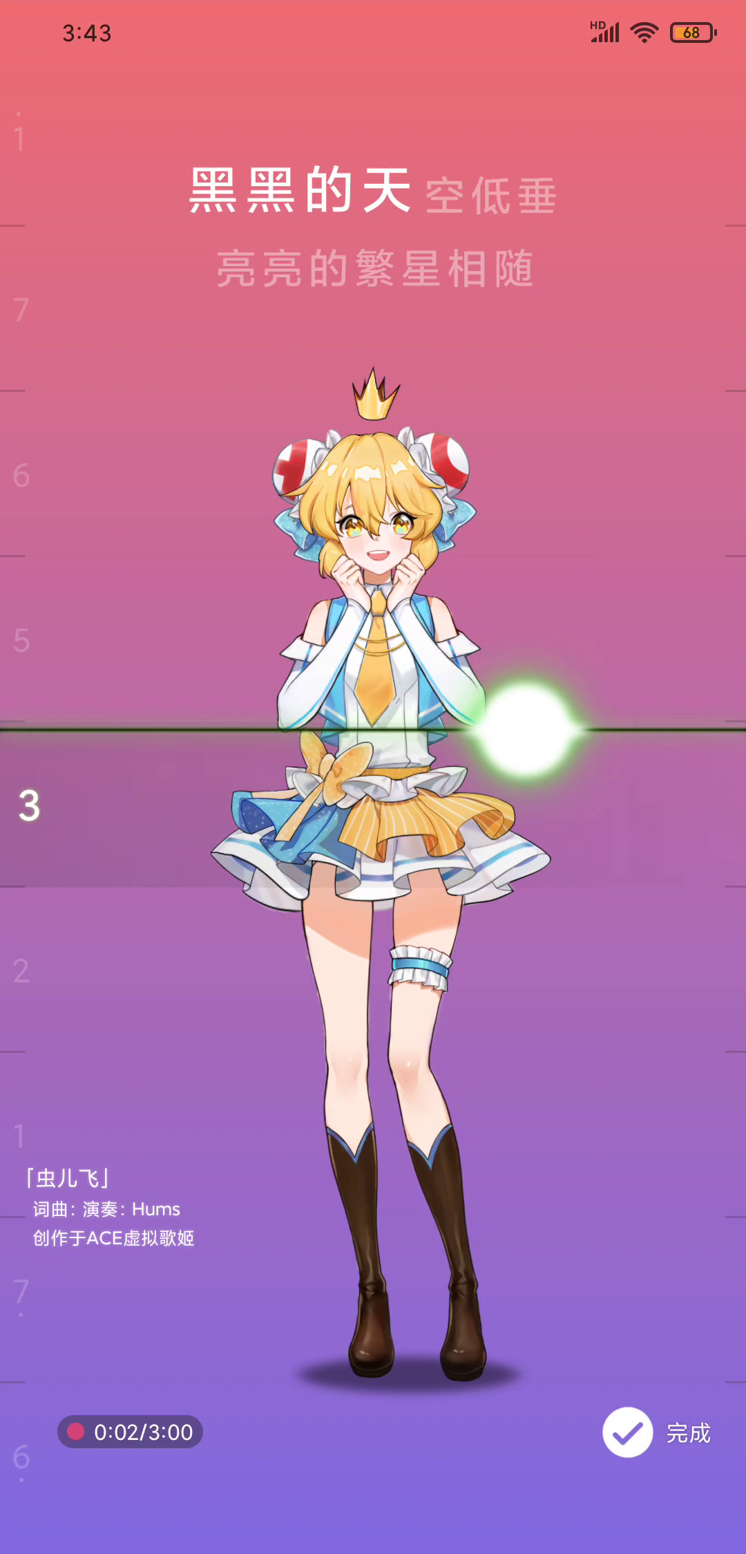 唱完了完整的,感觉也不是很简单,毕竟错一个音就要重新来,不过很期待下次的更新