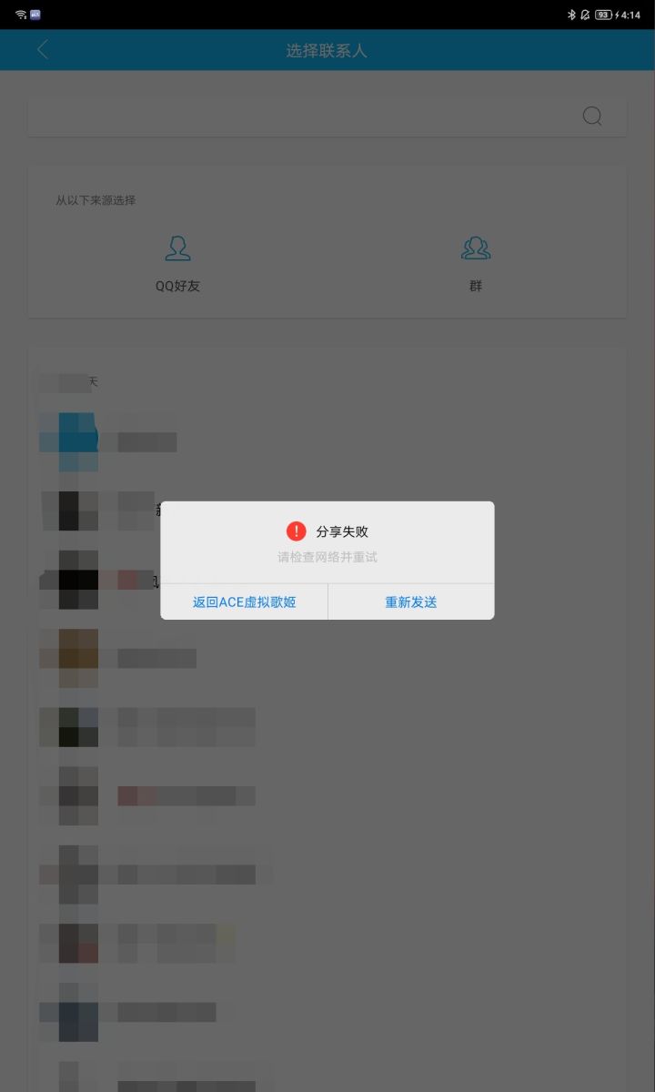小新pad,用的是QQHD,但是提示我分享失败。我在QQHD里直接发信息没问题,切换网络也这样。请问到底是什么问题(?