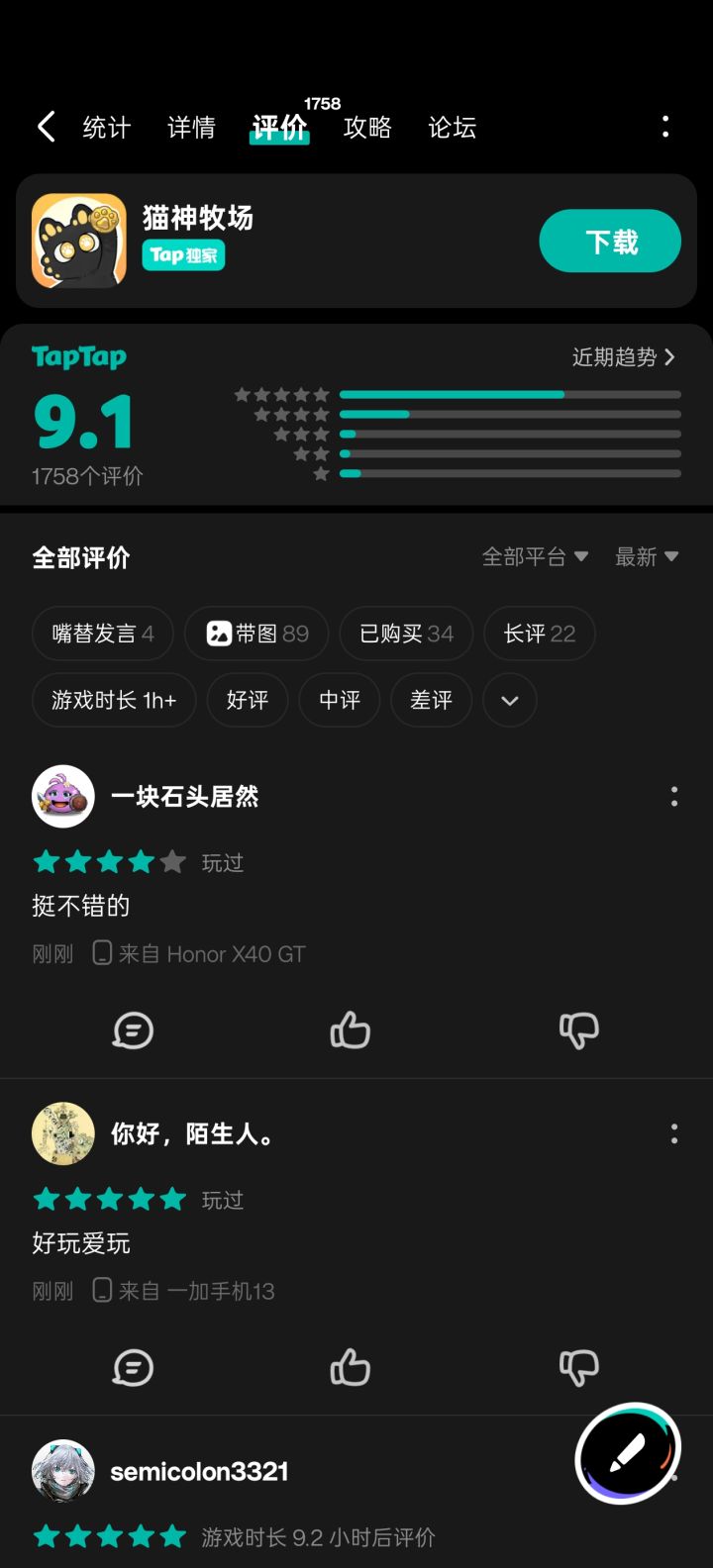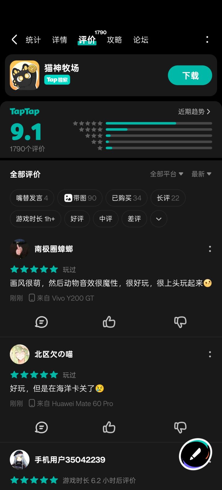 #猫神牧场 首先这游戏是内购抽卡冒充买断,典型的挂羊头卖狗肉。生生在两天内把评分从8.2刷到了9.4,而且现在还在刷。另外这游戏官方还找了一堆白板号来回复我,明知故犯。补一个该游戏论坛内我的原帖: https://www.taptap.cn/moment/768786727367082029