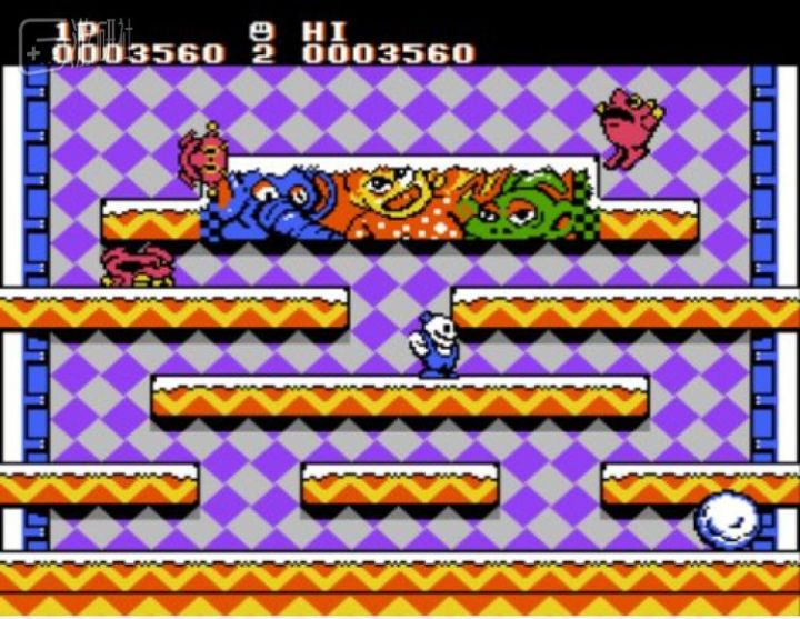 在只有红白机的年代里,能双打又好玩的游戏就那么几个,《魂斗罗》《沙罗曼蛇》《双截龙》《赤色要塞》……打得都快腻了。偶然的一次机会,长鼻君在亲戚家见到这么一款与众不同的双打游戏——两个穿背带裤的汤团,把可爱的敌人活埋成一个个雪球,再残忍地从高处推下。这个游戏嘛,好玩就好玩在双人模式。两个主角看似双胞胎,实际玩起来可不讲什么兄弟情分。眼瞅这边就要建起雪球大业,却被另一边扔来的雪球无情碾过,刚从雪球