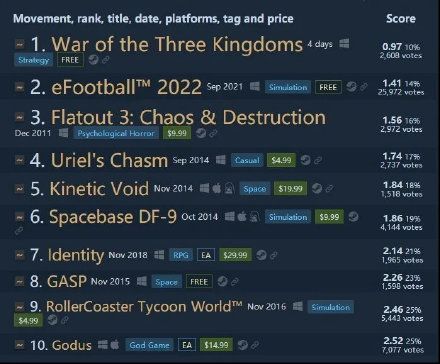 此前一度超越《eFootball 2022》登上Steam差评榜第一的《三国杀》,被玩家发现从Steam下架了,现在已经无法购买。