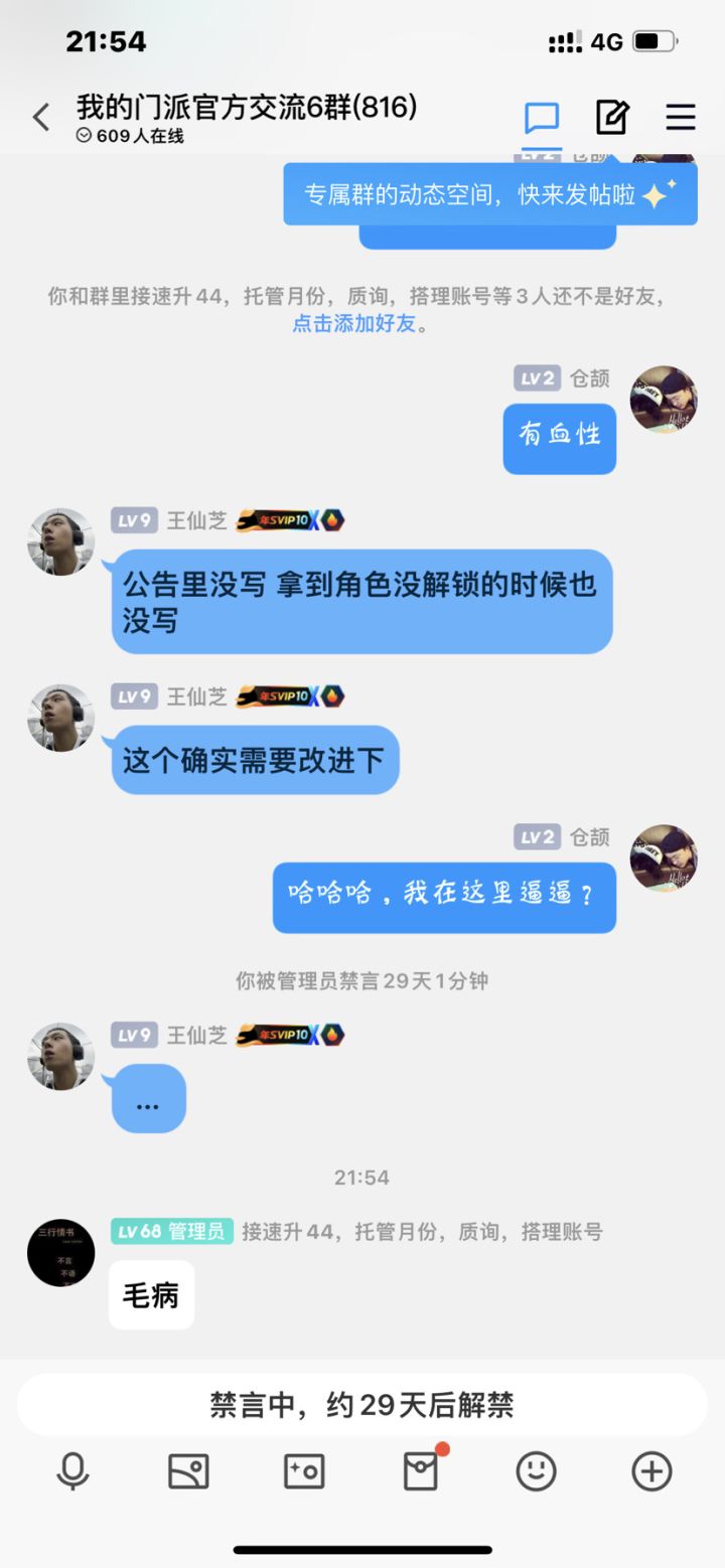 好好筛选一下游戏,游戏官方群管理喷人,禁言