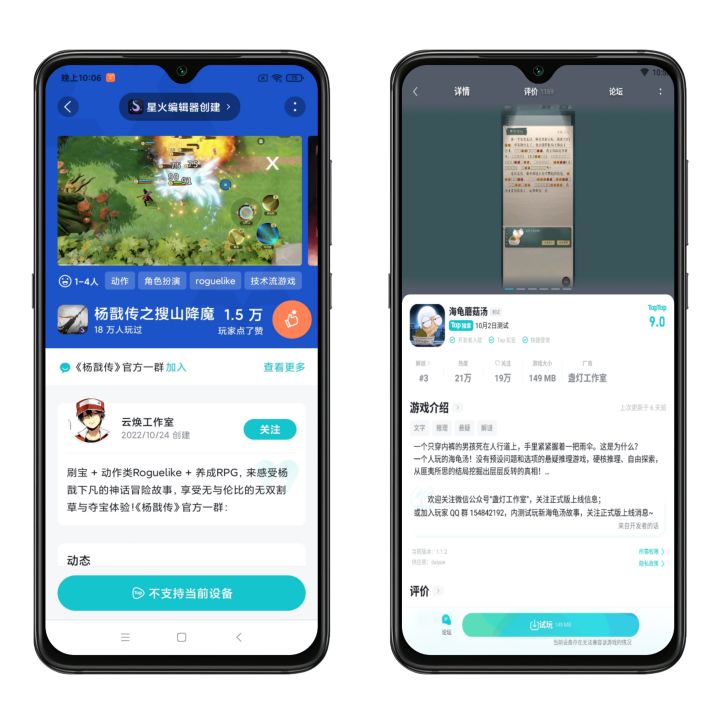 近期有部分Tapper反馈,在接入TapPlay以及创意工坊中的游戏详情页显示“不支持当前设备”无法游玩,出现这个问题主要的原因是兼容导致,主要有以下几条:1、当Tapper的手机系统是32位,而游戏只支持64位系统时,会出现此提示,关于手机系统的具体情况Tapper们可以自行百度查看相关参数,该提示后续也会持续优化2、当Tapper的手机安卓版本高于安卓12,且TapTap为老版本时,会出现