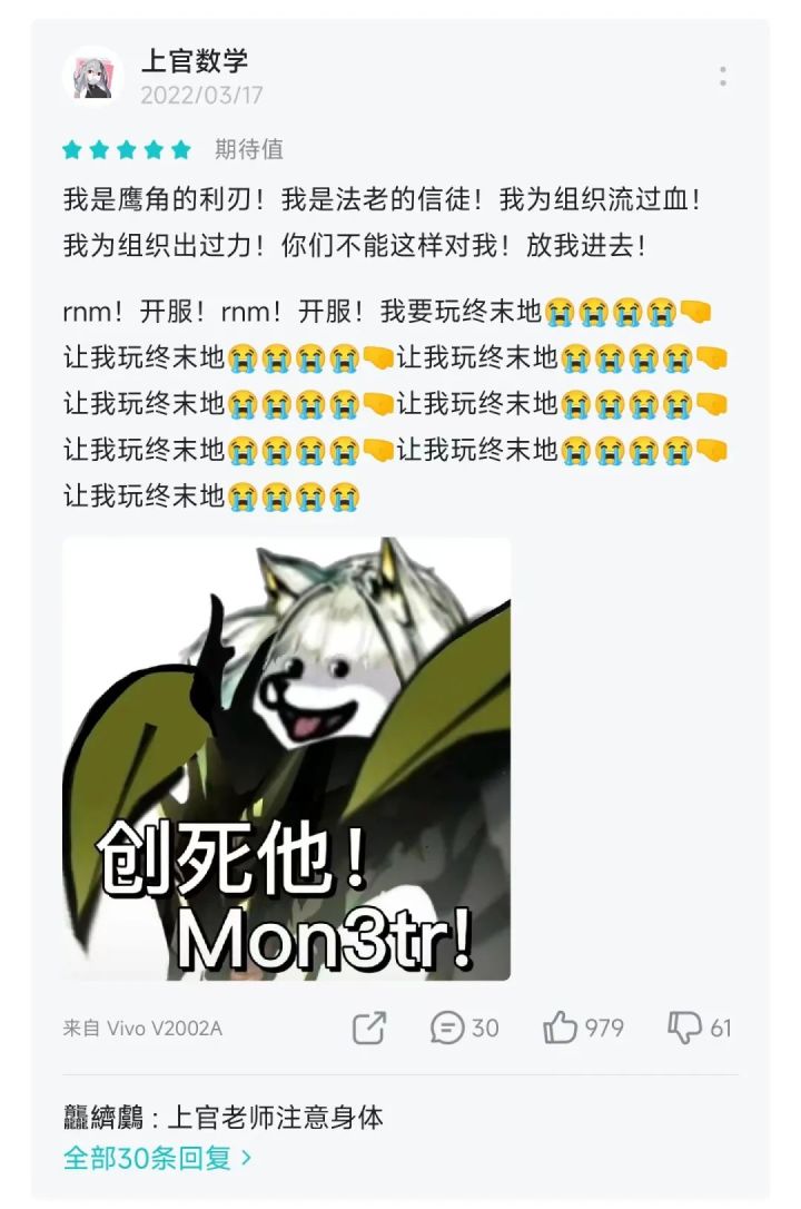 各位 Tapper 大家好,欢迎收看本期 TapTap 周观察。01评价区发病观察本周库洛游戏的新作《》正式曝光,再加上此前已经曝光的《》和《》,这几款期待值很高的游戏也成了玩家“发病”的重灾区,评价区的盛况一度令人非常感动,我们就来看看都有哪些浓度拉满的整活评价吧:造梗能力拉满的刀客塔们在新作的评论区当然也少不了高强度整活,而且花样也是相当多:很可怕吗?是的很可怕.jpg经典傲娇“