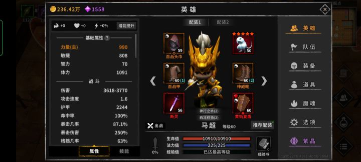 马超作为一个放大的工具人, 凑他的装备只需要三点。 1衣服帽子鞋子武器都必须有一个磁条:攻击可以获得两点怒气值 2 属性面板凑够90%暴击率 3 武器和盾牌有个大词条暴几可以获得5点怒气值 以上三个条件达成就可以了。