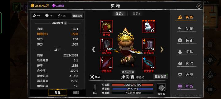 289金币冰诸葛,不挑怪。 说几个重要的点:(天心boss,除了龙母不用闪退刷怪) 1.甄姬2专属 100层以下必魅惑,全金币词条,攻速越低越好,不动; 2.刘备 角斗士魔魂,点技能做队长,双倍地图伤害,只放1次二技能激励,攻速大于诸葛; 3.徐庶 异常状态魔魂,全金币,专属套装+15金币,攻速越低越好,不动; 4.典韦 全兔子,105条能动2次,4层寒流,无尽源泉回蓝三件套 金币词条 5.诸葛 主龙母+伤害魔魂 优先80暴击 1.1攻速 卓越暴击3+2专属 必须有:甄姬2专属 刘备二技能激励 典韦满兔子 诸葛80暴击+1条击杀回蓝 最好有:典韦无尽源泉回蓝 诸葛3+2 其次有:金币词条 徐庶专属3 100层打不了,打80、70,金币词条可以慢慢完善,刷装备越多选择权越大,金币词条越多