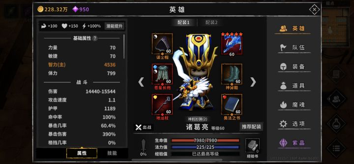 萌新冰诸葛七天过永夜100,感谢孖㺭大佬的攻略帖子冰诸葛开荒真的太强了,有一个典韦就能玩。。。我典韦只能2动,诸葛红字520W过的100,小部分怪物不能秒。boss全靠夏侯两件套硬刮2333一天14+小时肝这游戏,真的有点上头