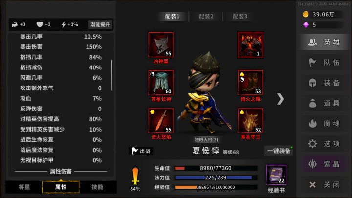 首先魔魂问题,并不存在什么最优解,每个人的装备不一样,魔魂的选择就不一样,先贴出属性图如图,夏侯精英伤80,火伤101,56000的血,这张图带的魔魂再来换魂的属性图精英伤80,火伤108,血量54000看完基础面板我们再说说增伤,我们都知道,火夏侯的增伤来自于火伤,精英伤,和护盾越高,造成的伤害越高,而夏侯护盾附加的伤害不能暴击,所以不吃暴击爆伤,我们在装备选择上只需要考虑,体力,精英,