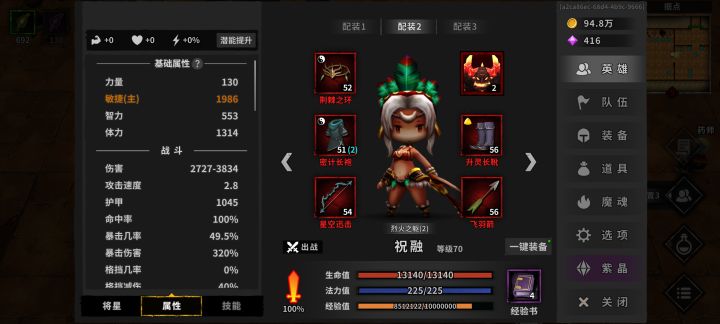 如图,打到40层打不下去了,存在几个问题。1、出手速度没怪快,容易被秒2、没有防闪避,偶尔会出现不够怒气放大3、输出不够,一轮秒不了怪针对这几个问题,请教一下各位大佬。1、我有一套甄姬套装,能解决这个问题,但是有一件是60级的,想问一下2件套效果和3件套一样吗?如果一样的话我就没必要升到60级了。2、防闪避这个属性是必须自己洗出来的吗?有没有什么装备必带的?我图鉴都170+了,没见过有