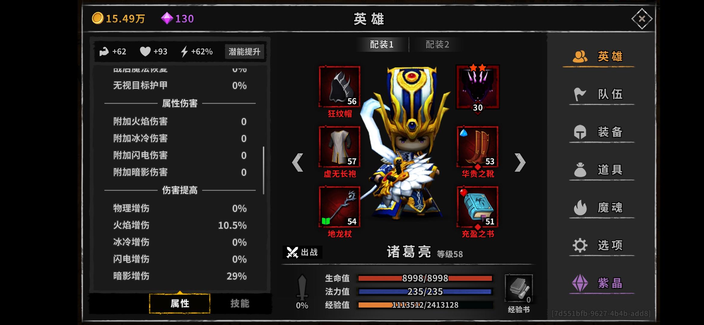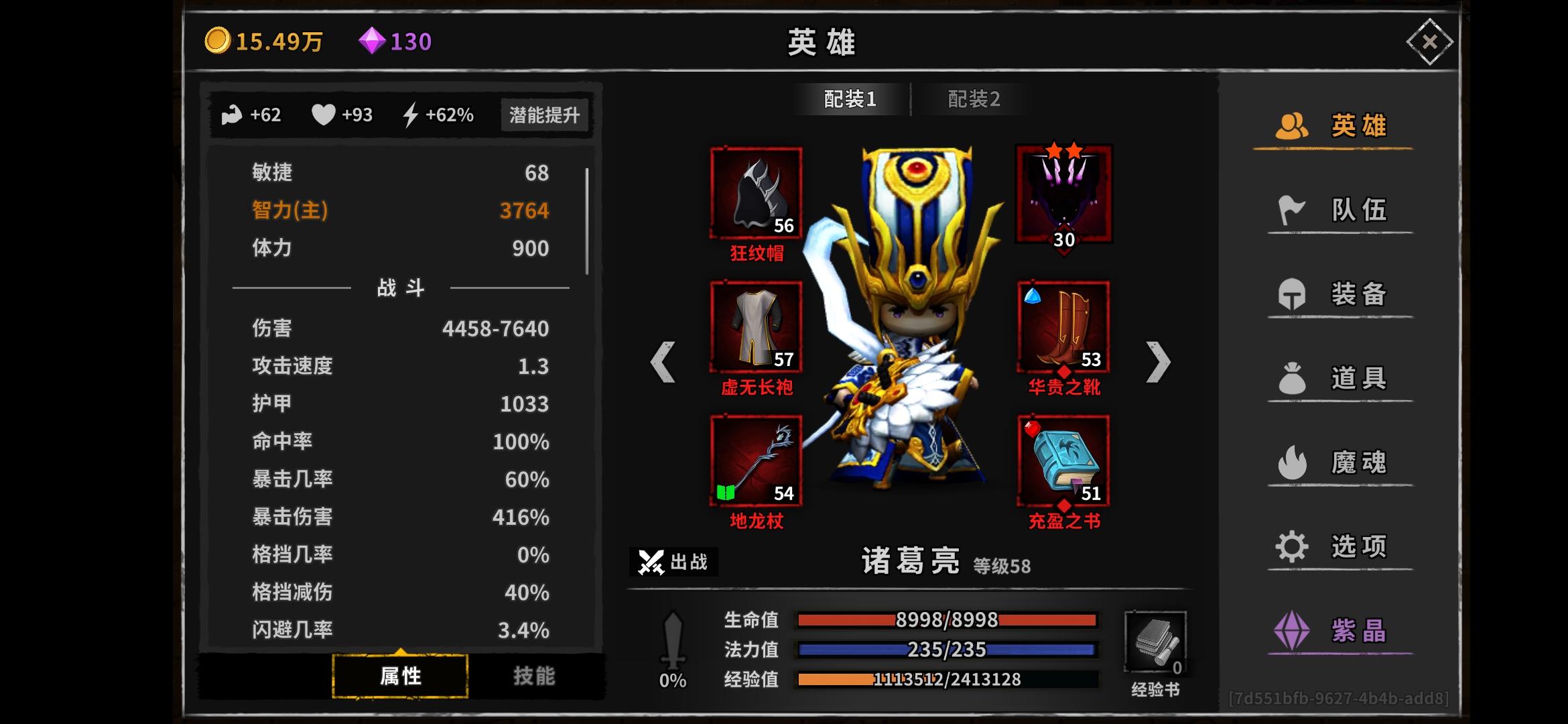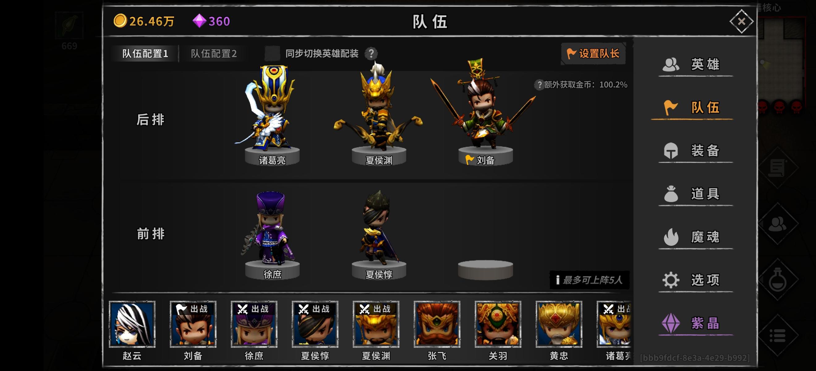 求助!!大佬们给条活路吧!我现在是常规阵容,双夏侯,刘备,徐庶,诸葛,诸葛加上刘备的暴击正好100暴击我现在主手是500爆,副手不知道选啥,打红字最高也就38w这样子,在20来层很尴尬(甄姬和周瑜都有了,天心还没准备弄)我现在要不要把主手换成必大啊刚才忘了给图了😅😅