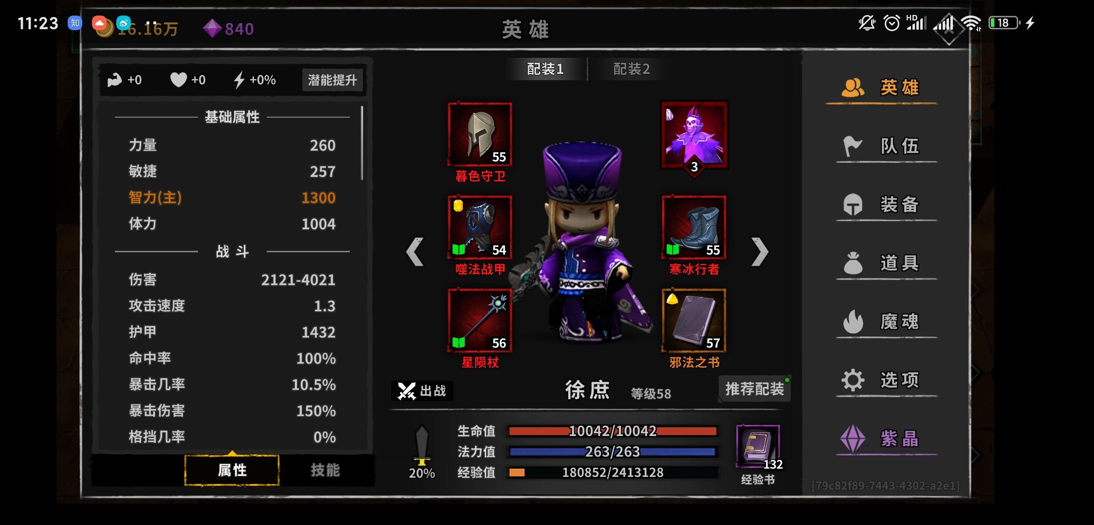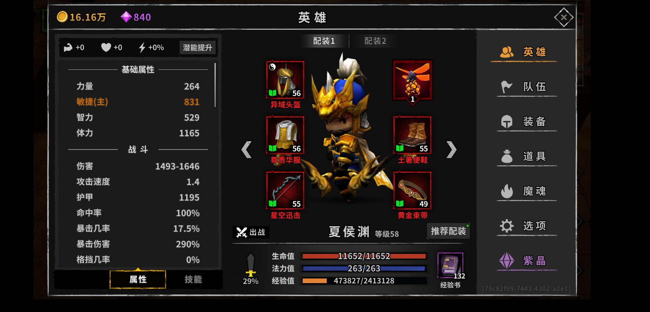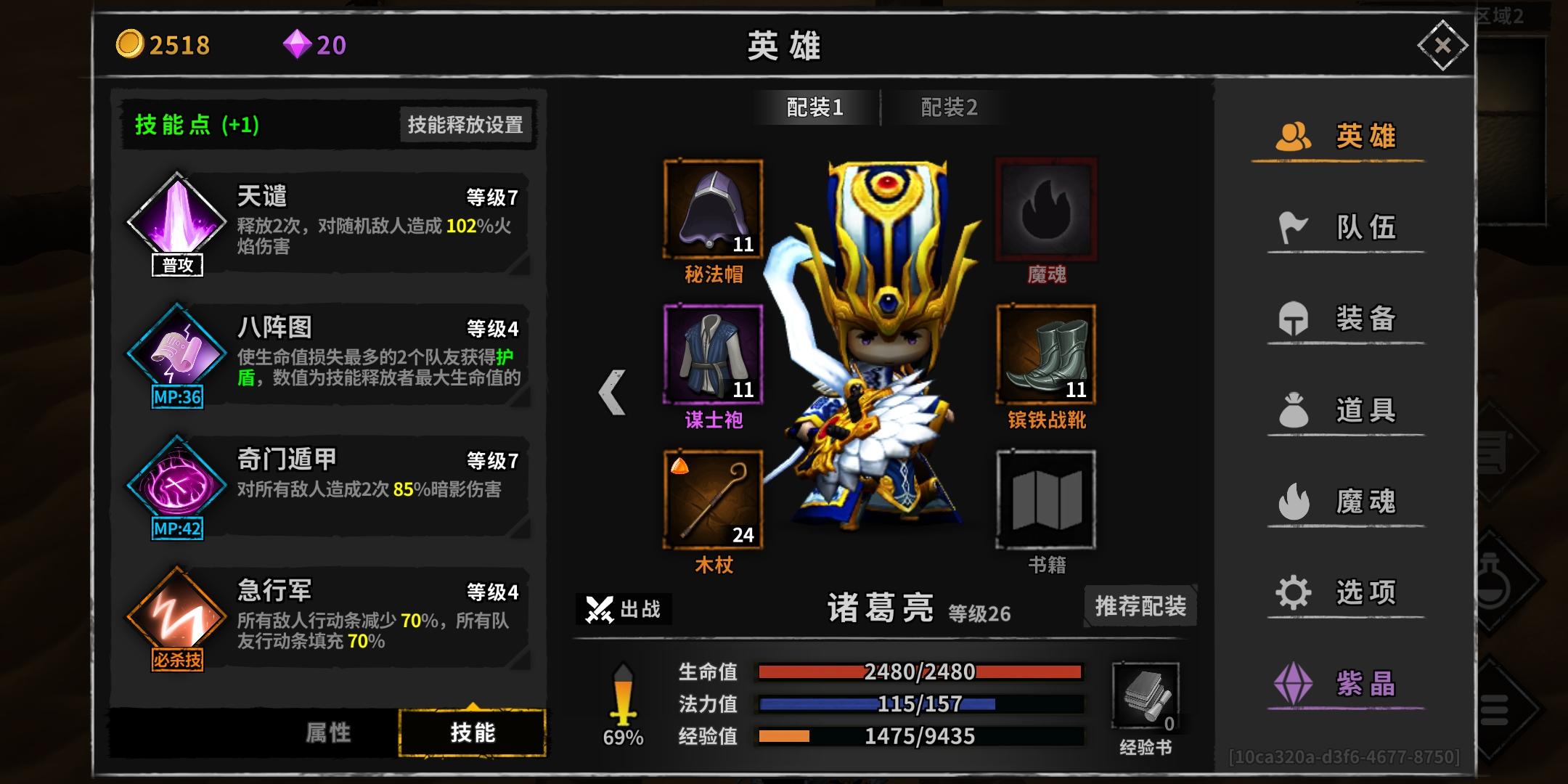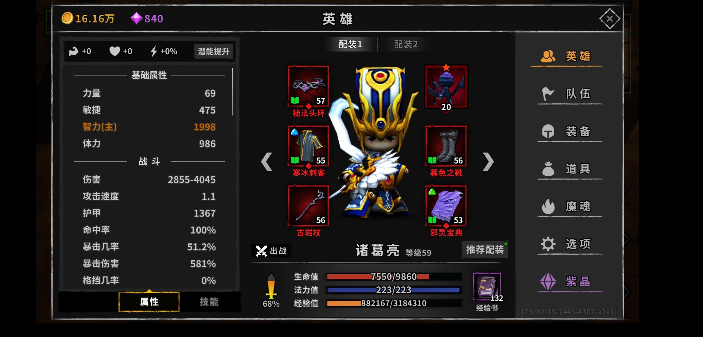 大佬们,帮忙看看怎么提升啊,主要是辅助门应该怎么弄,现在诸葛最大暴击24万,能挂机到11层,打不过13层,我感觉是辅助的装备什么不对。感觉诸葛的装备到我这个阶段的天花板了啊,怎么提升呢,