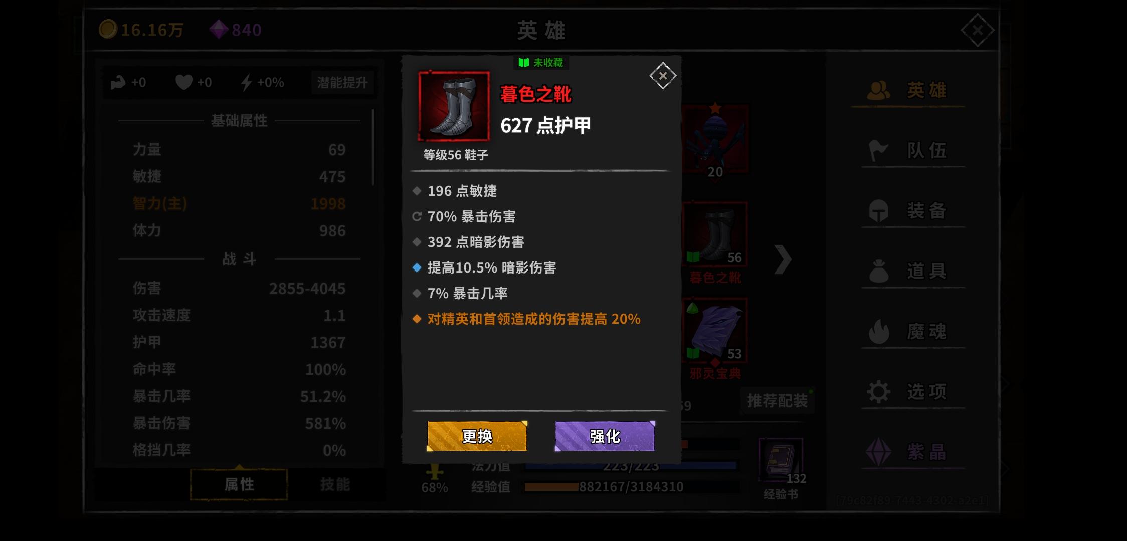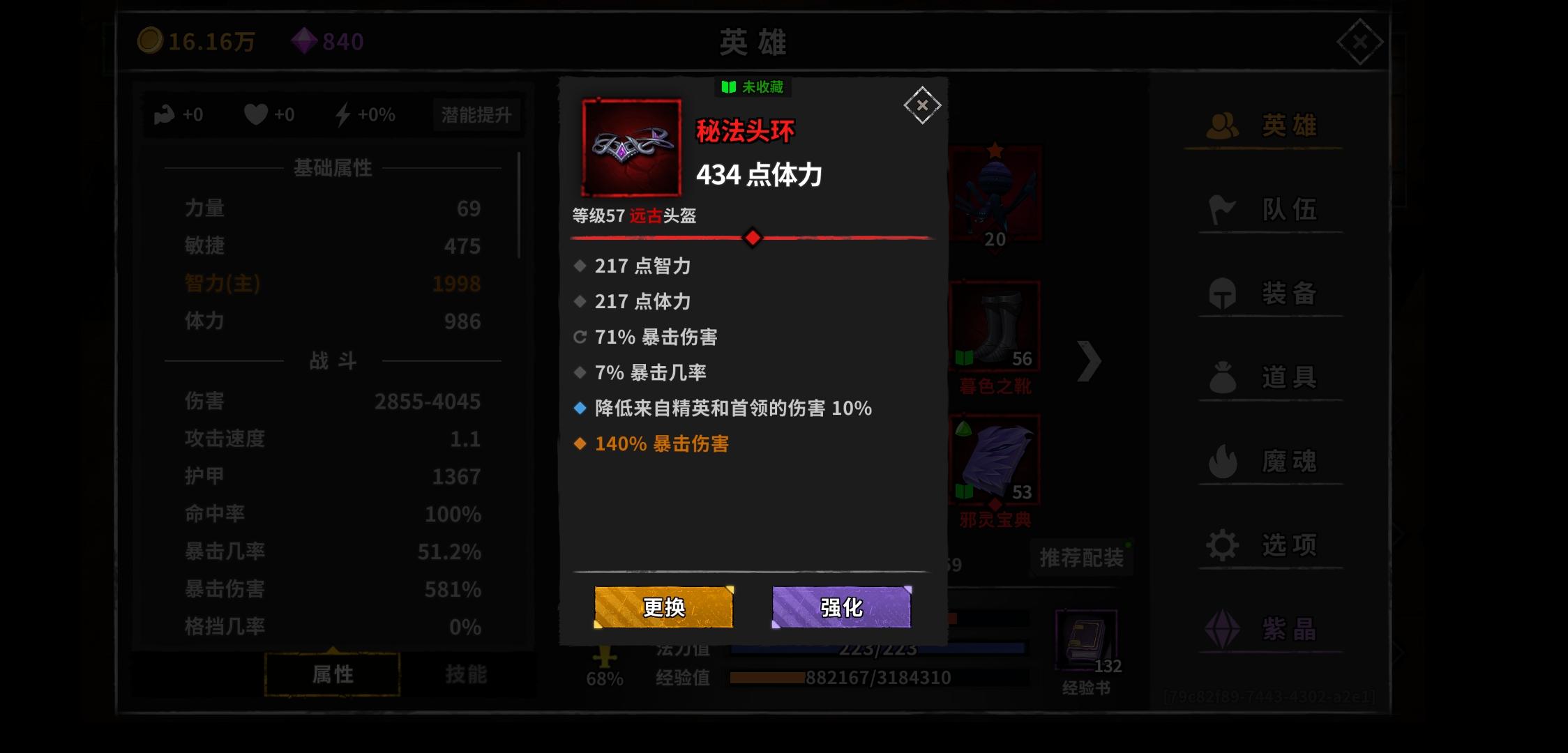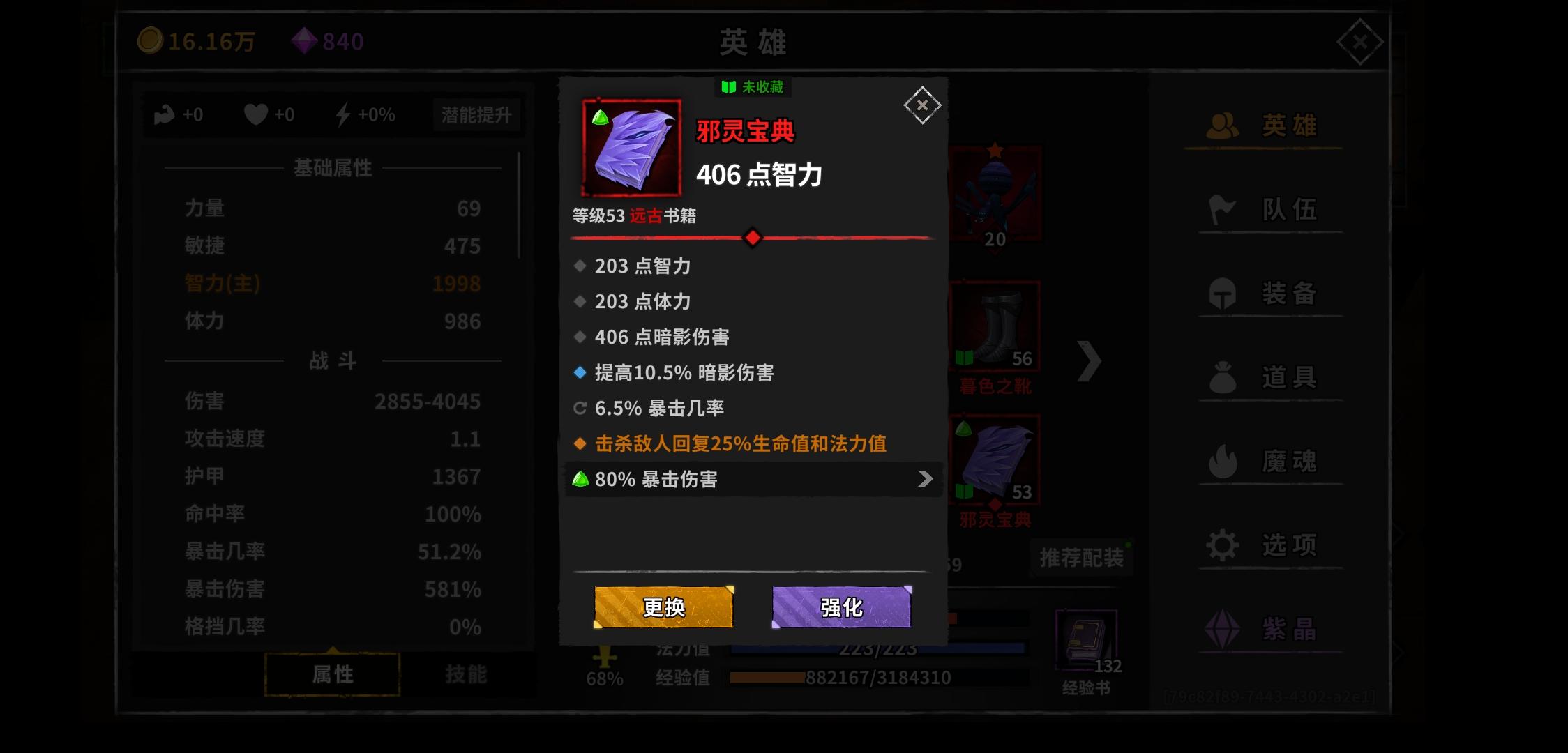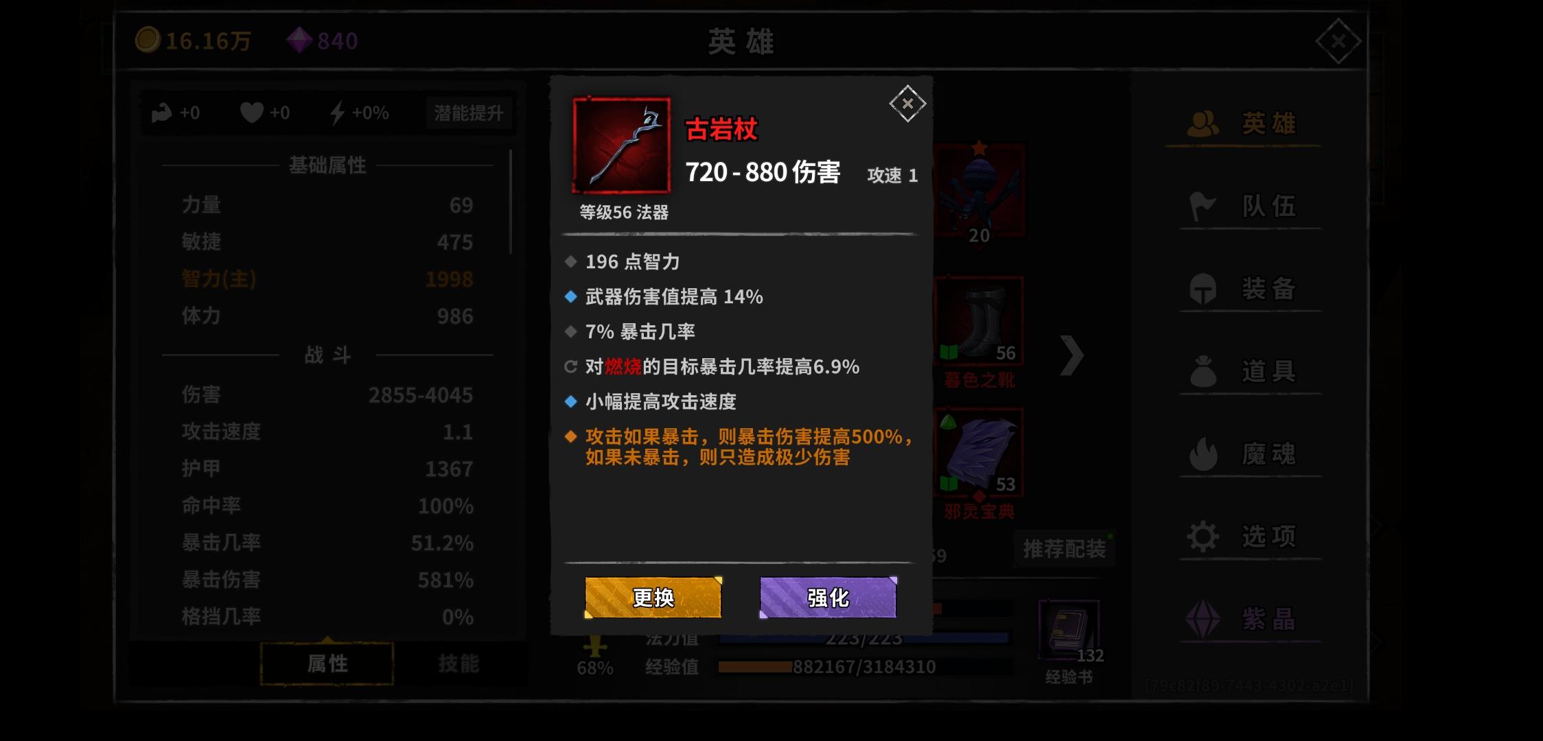 萌新问一下这游戏提升伤害最好的属性是啥,才玩几天,面板4500。暴击几率70+。暴伤824%每次才打15w简直了,最大伤害值,智力,暴伤,到底哪个提升伤害快一点,在不算魂的情况下,萌新没魂😂