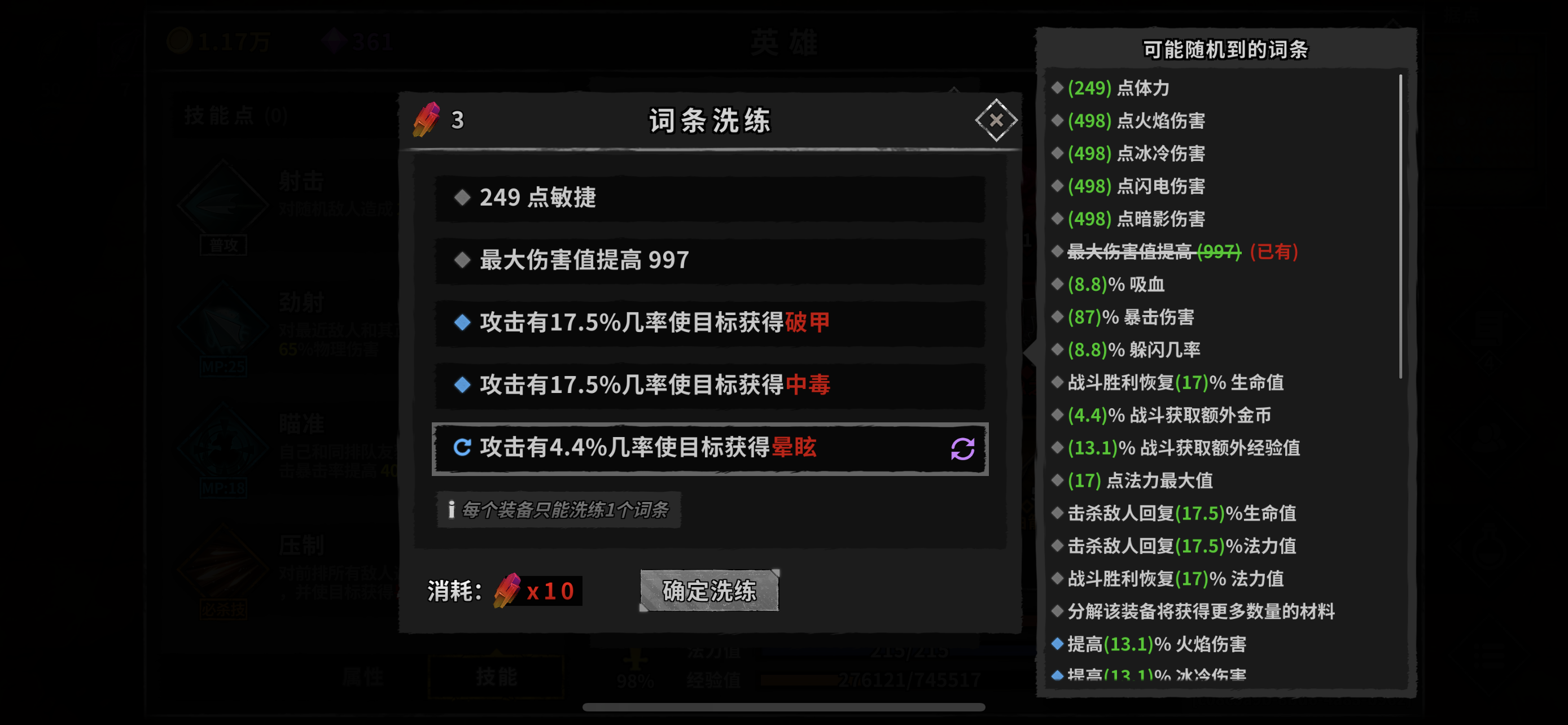 这件装备洗词条为什么要10个铁?