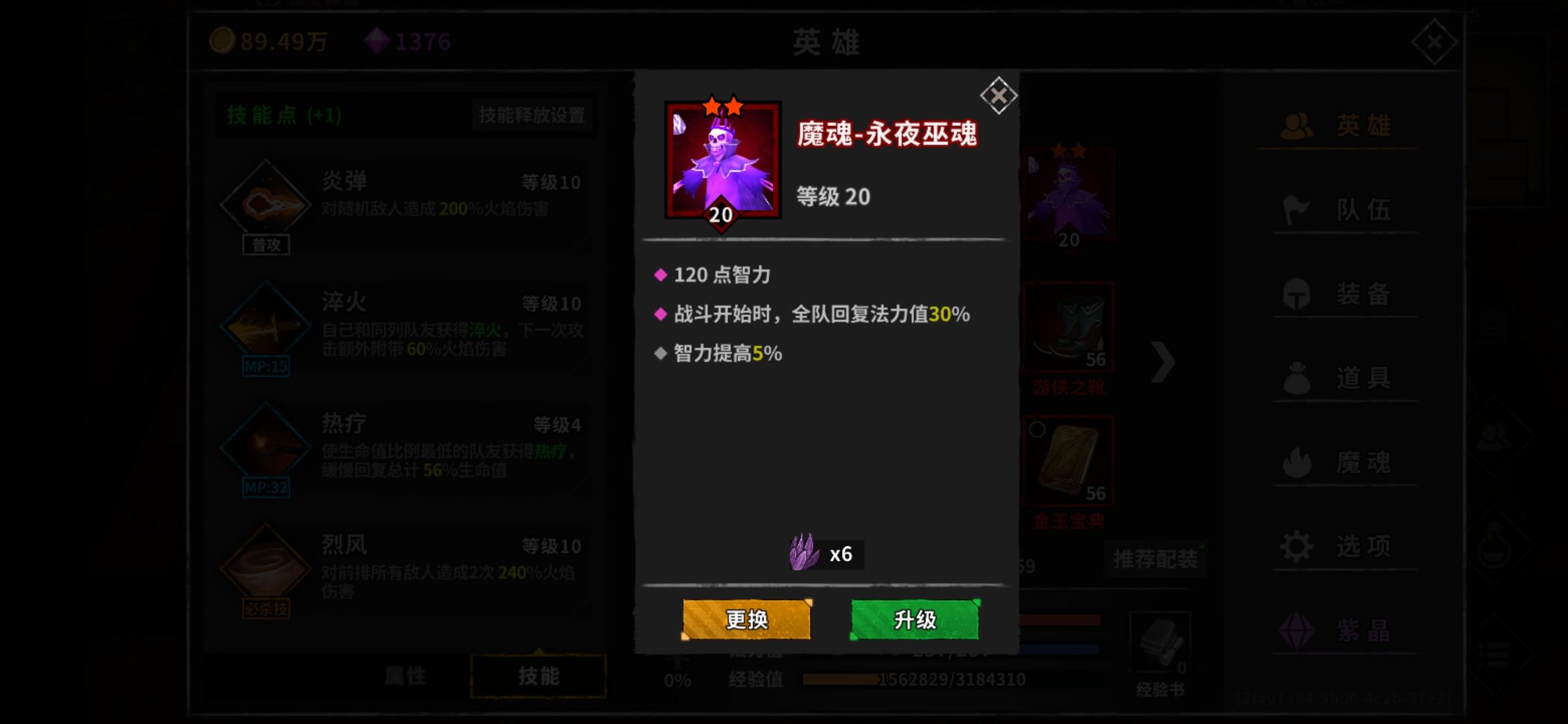 看了攻略玩成以下的状态目前是永夜21层刷着。阵容是:前排独眼龙。徐庶。。。后面刘备,夏侯渊,诸葛亮魔魂:狼、角斗士、永夜巫魂。这三个稳步在弄。三星了。的确有效果。独眼夏侯在打永夜boss的时候会上兔子。能第一步上盾。关键来了!!!!诸葛亮的魔魂!只有一只恶魔之王。诸葛亮的魔魂。看攻略说是主魂龙母,配恶魔之王。梦境吞噬者。熔火魔龙。。。。但我现在只在商店里刷出一只恶魔之王。第一个问题