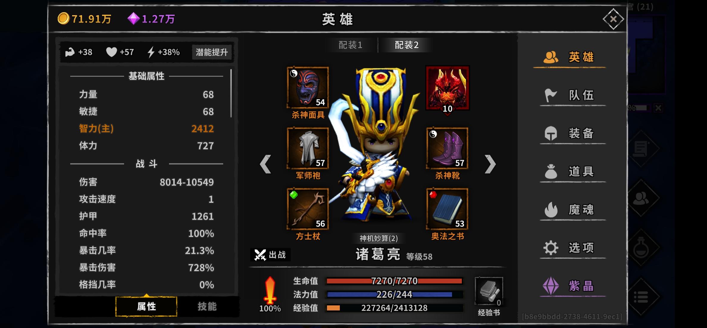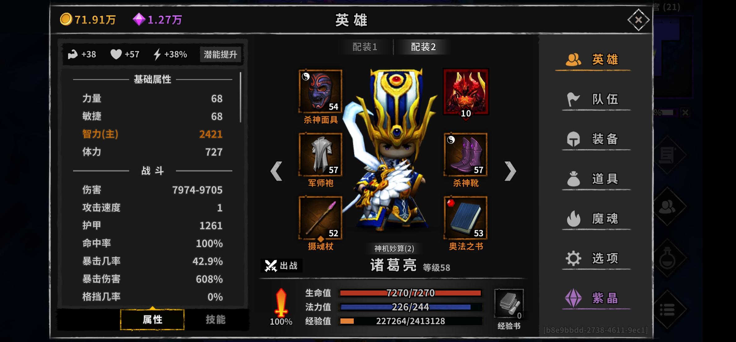 新手玩家玩了一周了,英雄全齐,本想养天心,但老玩家说100层后再养,所以放弃了,现在套装始终刷不出来,合出来的全垃圾套,目前就只有诸葛亮夏侯惇和周瑜套装,练了诸葛亮就没练周瑜,推到20来层,推的太慢了,很多时候一波小怪都要打两次,导致诸葛亮蓝回不上,全靠夏侯惇硬砍,目前主c诸葛亮,辅助刘备,夏侯渊,马超。现在诸葛亮只能在爆伤和暴击中二选一,爆伤输出全看脸,运气不好小怪要打3次,选爆伤40万输出,暴击25万输出。各位大神多多指点一下,谢谢!