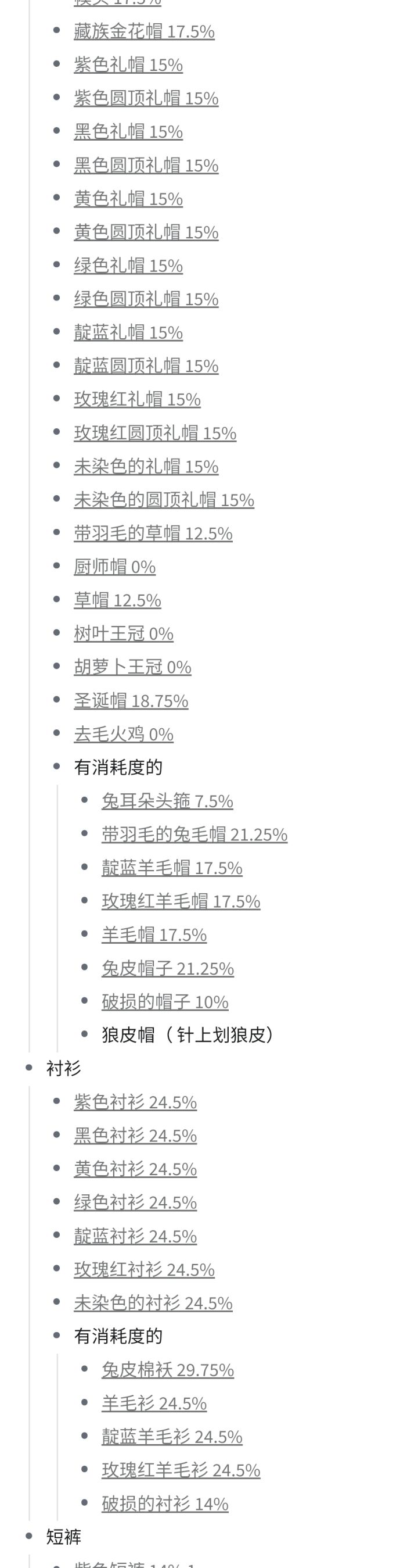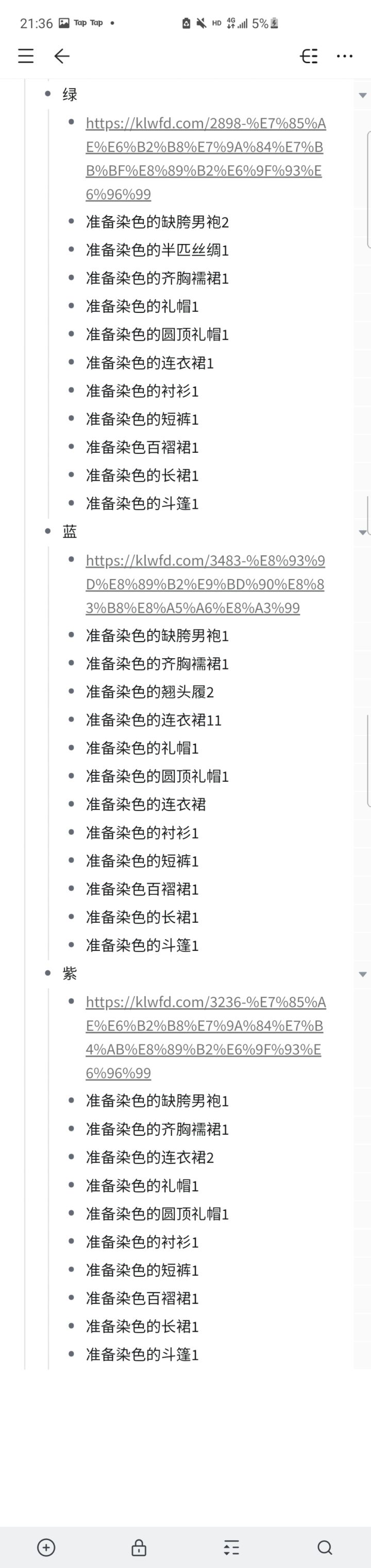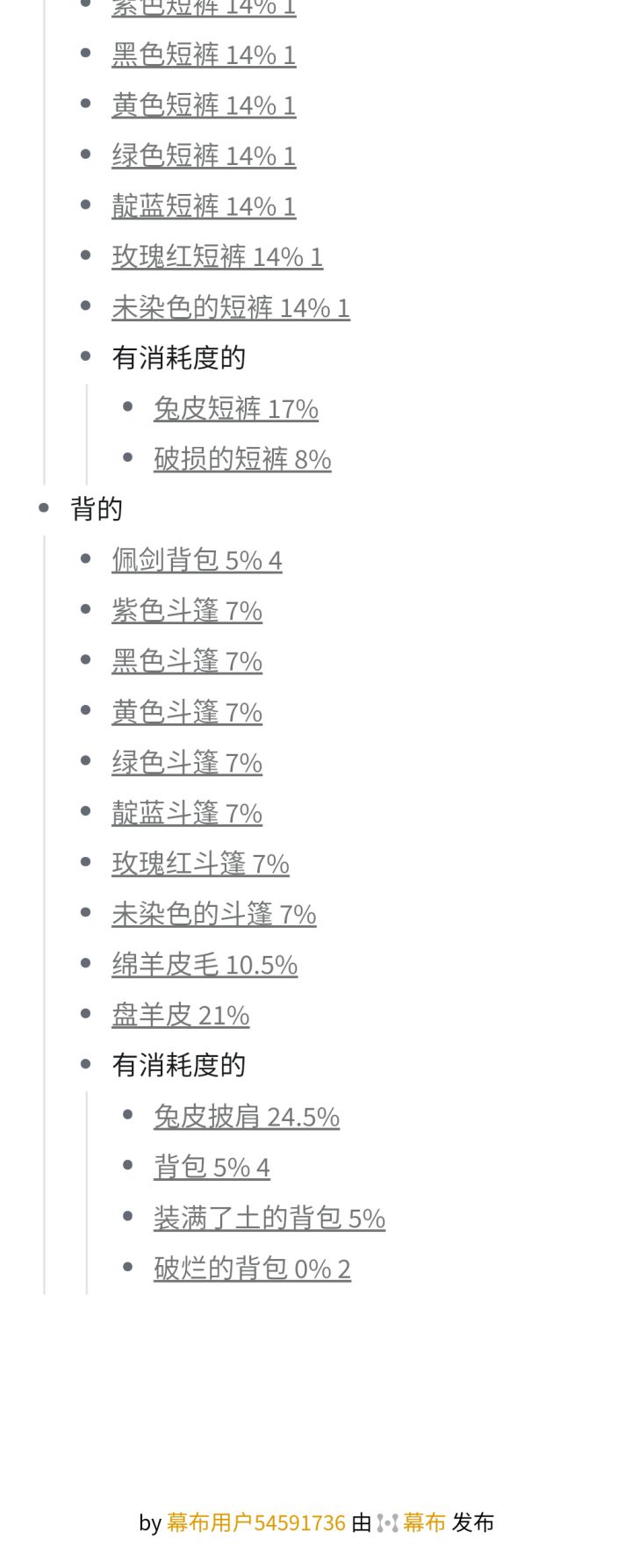 做衣服做得头疼,自己写了篇(自用的,希望能帮助到大家)提前把染色的物品放染料旁边,避免误染,少染。(怕搞混的可做完打勾)染色攻略暮布地址:衣服分类地址:有什么不对或缺少地方欢迎指正和补充。【第一次做华夏攻略会有缺斤少两的情况出现(小声逼逼¦•ˇ3ˇ•。))】