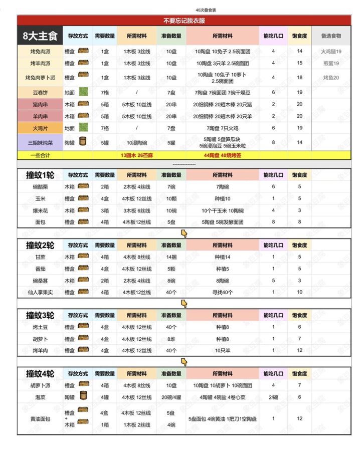 —————————分割线4.23——————————【更新一下表格,优化一点点细节,增加种植小表格】玉米小麦胡萝卜是常用的,所以数量无所谓了—————————分割线4.28——————————更新叠食后数值我撞蚊子顺序按照1324吃的,吃完是 196干活,在沙漠还呆了三五分钟,59岁还有 ➕63